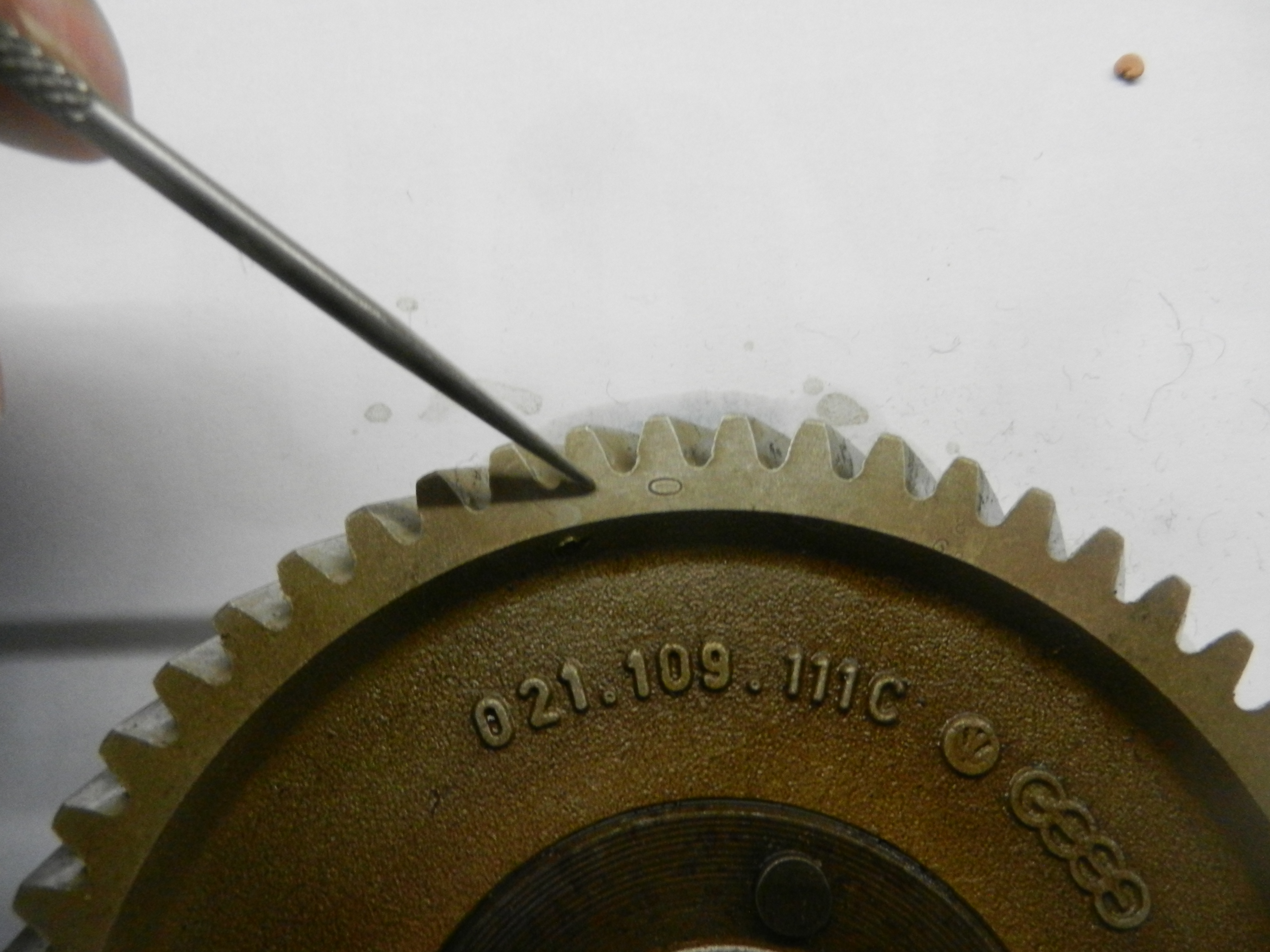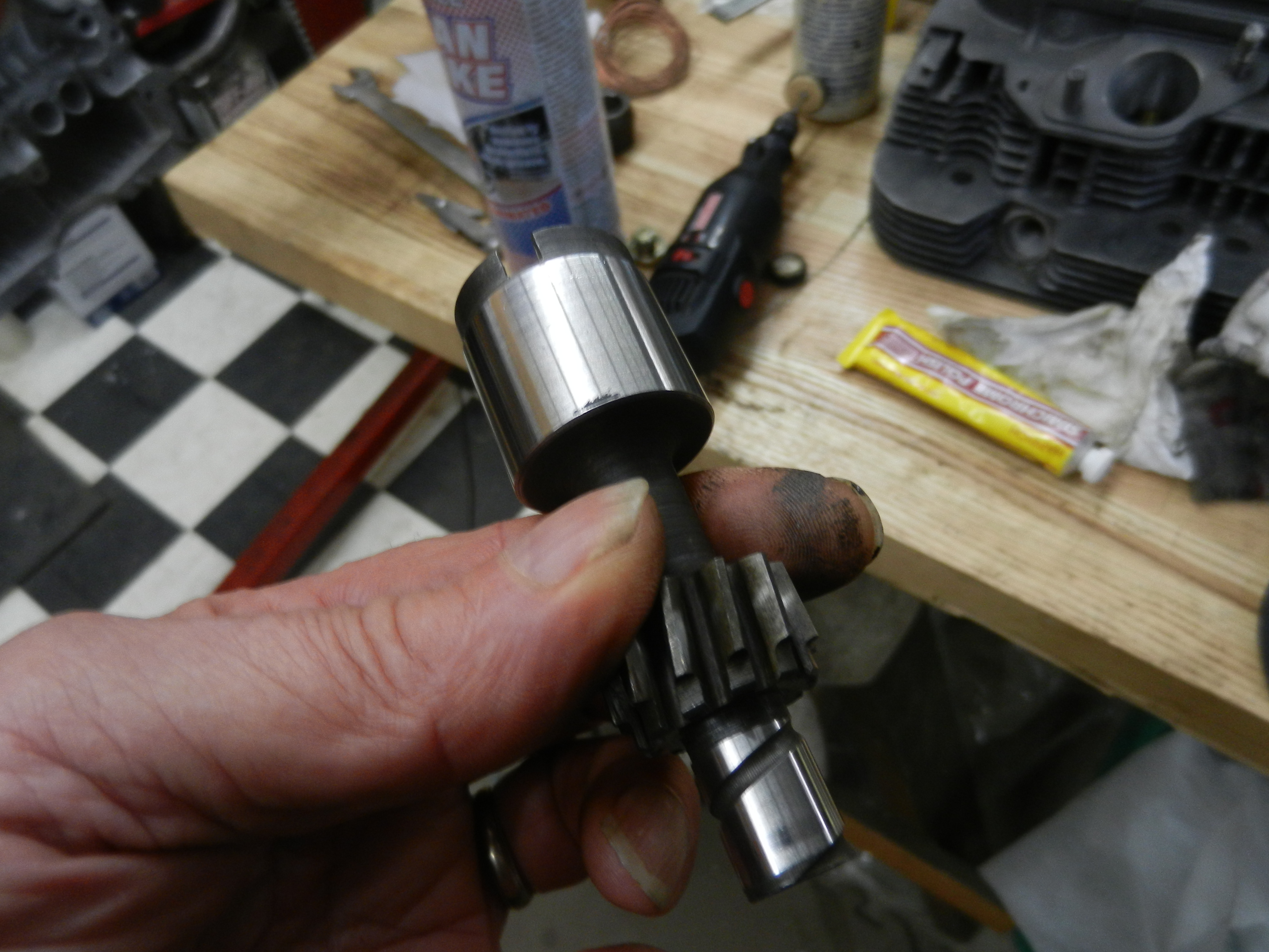 Now, we are going to try it on the camshaft. Problem.