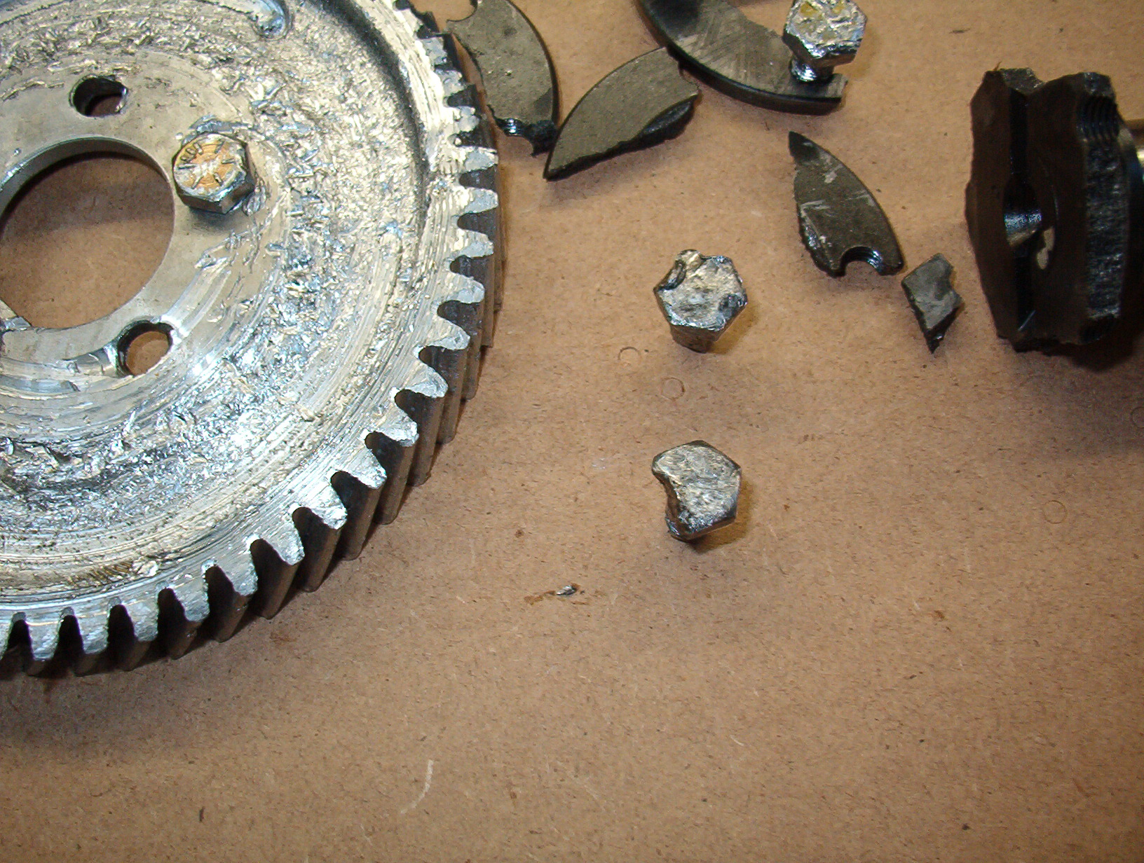 There are remedies for this, shallow hesd bolts, recessing the bolt holes in the gear, but why bother. Ignore this, and this is what happens.
