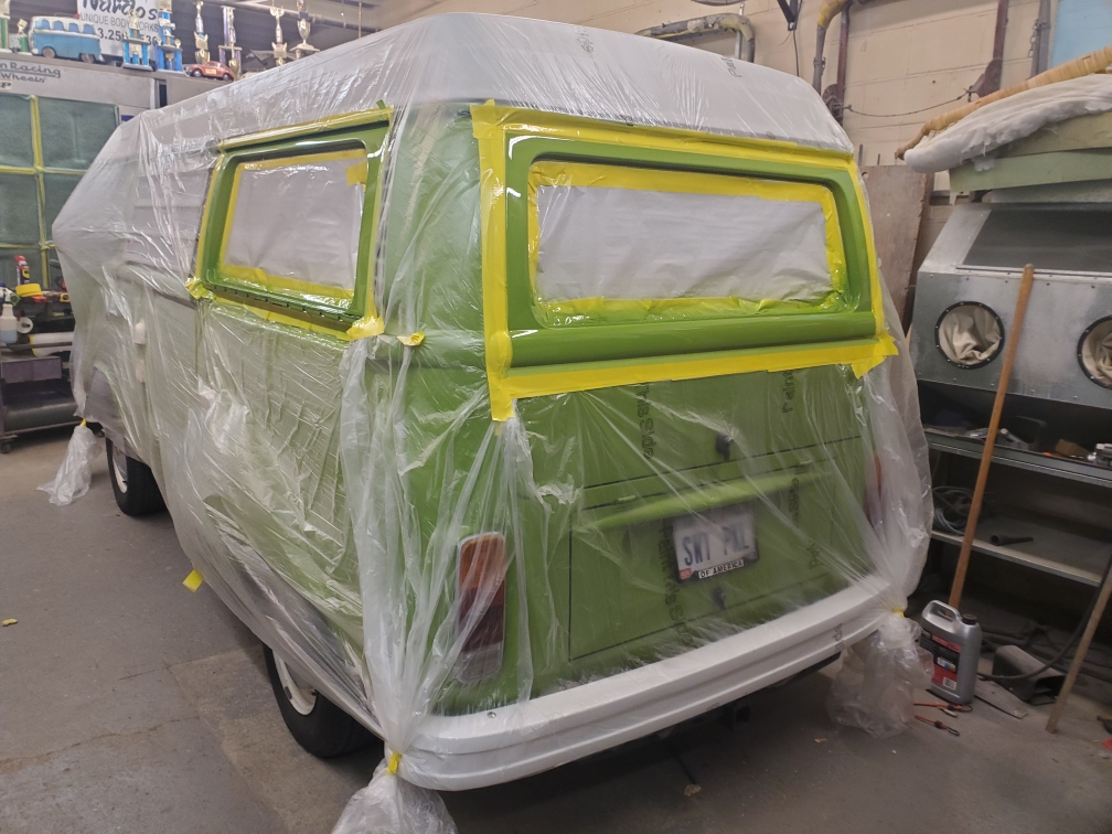 Finally got around to putting in new sliding rear windows. Rather had new windows put in. I was afraid there was some rust in the channels so found a body shop through the Cincinnati VW Club that was up to the task. I took out the rear cabinetry and took it over. Turns out there was rust in the left side rear and rear hatch. Right side was okay.