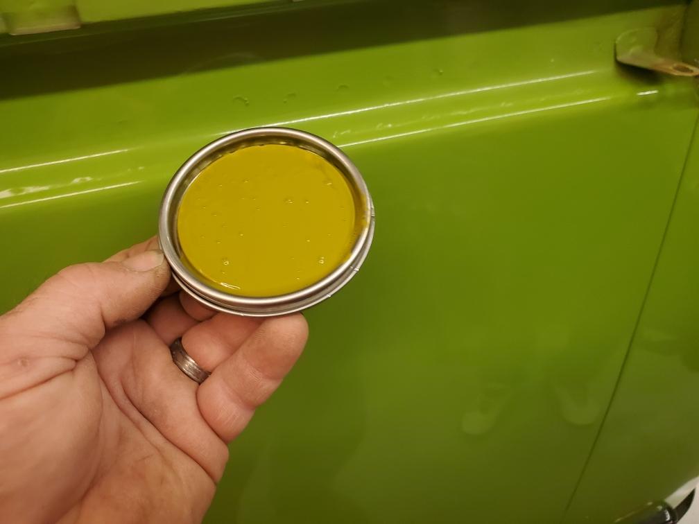 I knew Sweet Pickle had been repainted on the outside turns out it was a bit off from the original sage green.