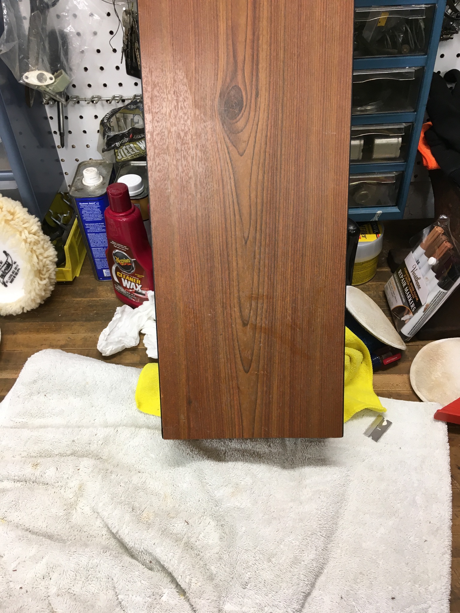 While the cabinets were out I thought I should repair all the loose laminate and trim. Some contact cement and a lot of clamps.