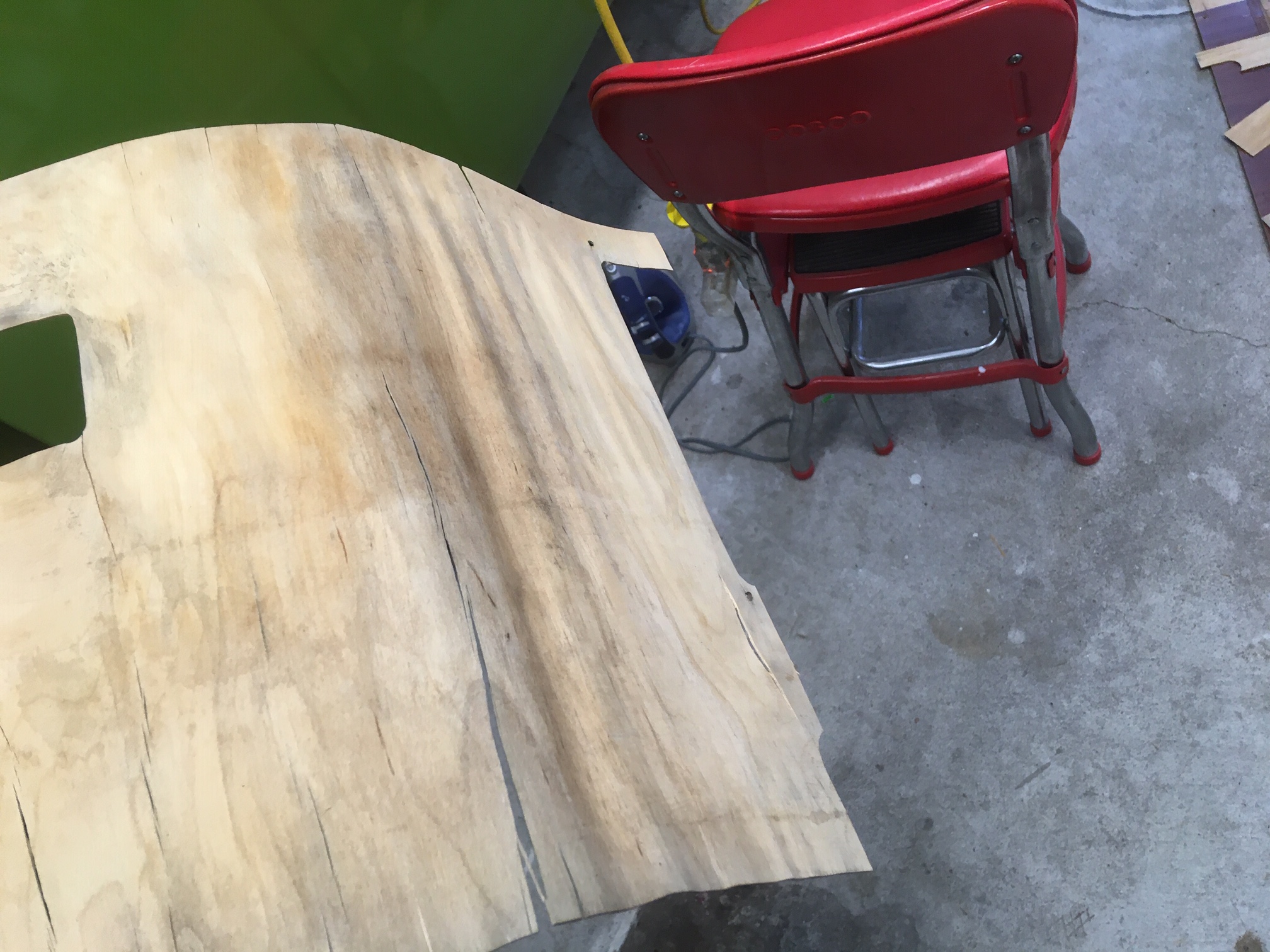 The wall panel behind the fridge and sink was pretty warped and delaminated. I want to fix it because the wood species/pattern matches the other panels which I have sanded down and refinished. It is not stock but does not look too bad. The one on the right side of the seat was delaminated and I was able to glue and clamp it back together. This on however was delaminated and wrinkled up on the two outer layers. So with nothing to lose, I couldn’t make it any worse