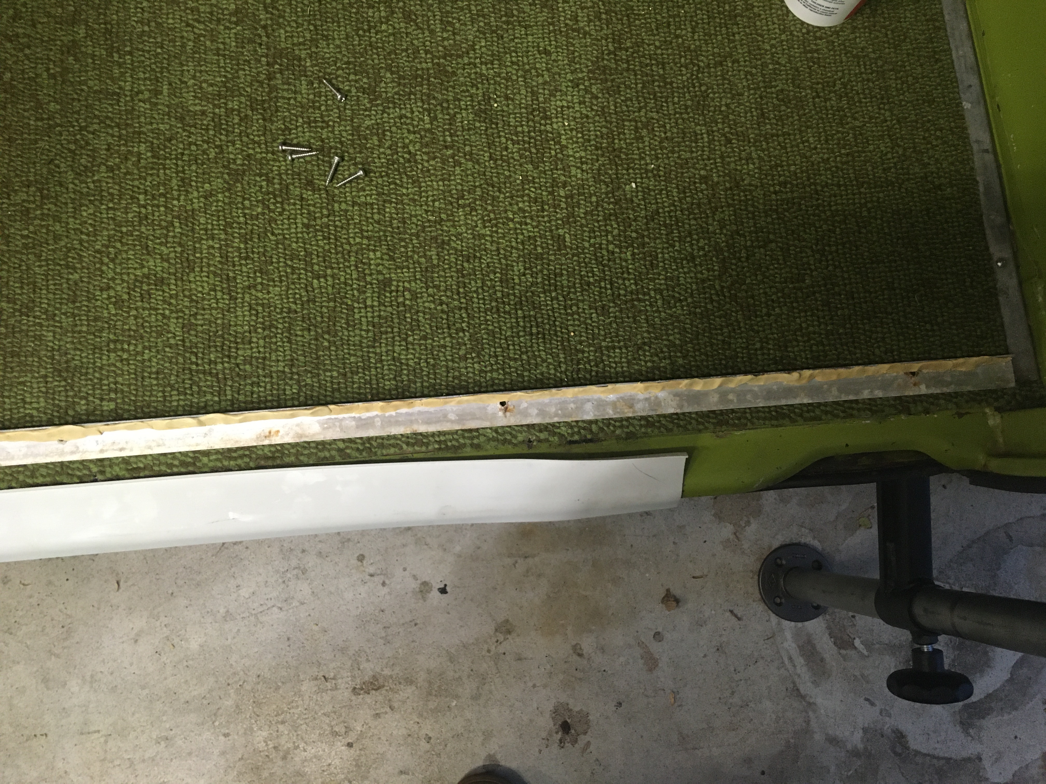 New sill cover finally came in. Everyone was out of it except Bus-Ok in Denmark. He was really nice and responded quickly but took over 25 days to show up. I had kept the old one just in case but was glad I did not have reinstall it as it was roached. When I took off the threshold plate it seemed to have some kind of putty on it acting as a seal. The putty was on the lip between the plastic sill cover and the aluminum threshold plate. I recreated it with some plumbers putty, the ordinal material reminded me of that or glazing compound. At rate I put some on when I tightened it down it oozed out so I think it made a good seal.