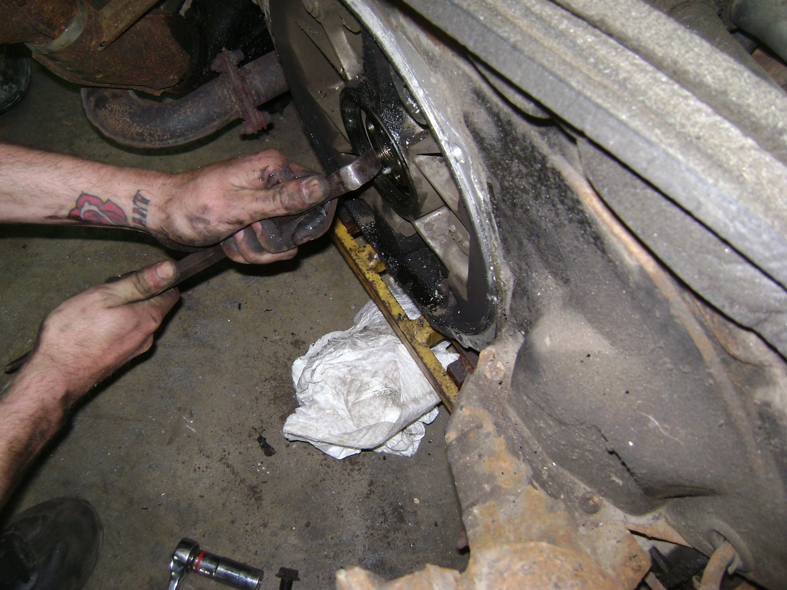 Here's Dan the man (lurch) removing the engine on Tune Up Day years ago at Bill's old shop.