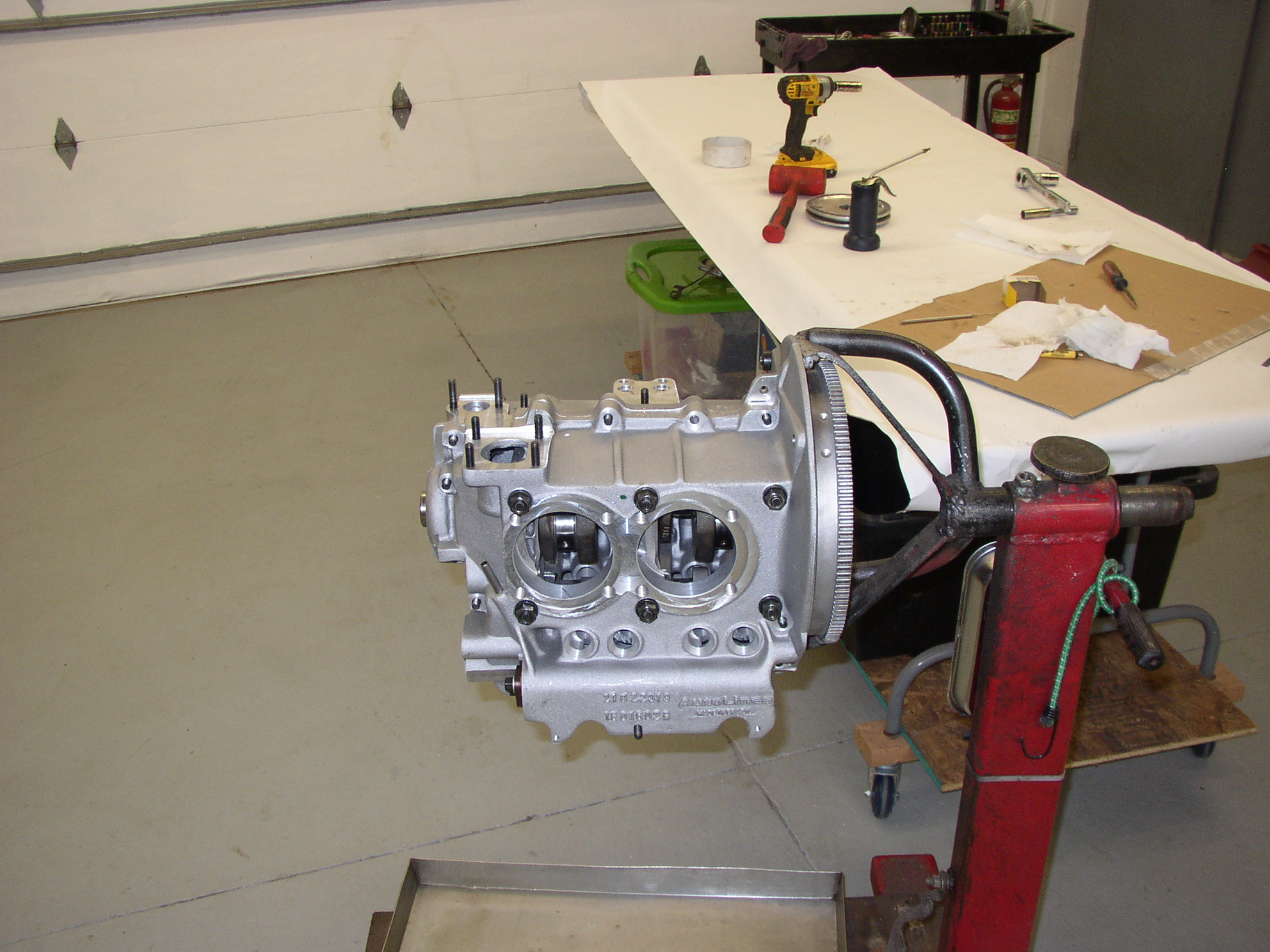 This is just mockup, not final assembly, I bolt the cam and crank in to make sure everything spins freely. I only use motor oil for lube on the bearings as that's how I was taught as a kid and that's what many mfrs state. Thicker lube can actually work against you on assembly, plus if you have a snug bearing you won't feel it with a heavy lube. I'll pre-lube the engine thoroughly through the filter flange before it's started. With oil the assembly spins as free as a bird, several revolutions when I spin it. Now it will come apart, rods and lifters will go in and seal up the case flanges. Oddly in the hardware kit I got doubles of a lot of things but no cam plug or bearing dowels. I have plenty of those. :mrgreen: Earlier Brazilian cases used a straight cam plug, now they're cutting them for an OEG style plug.
