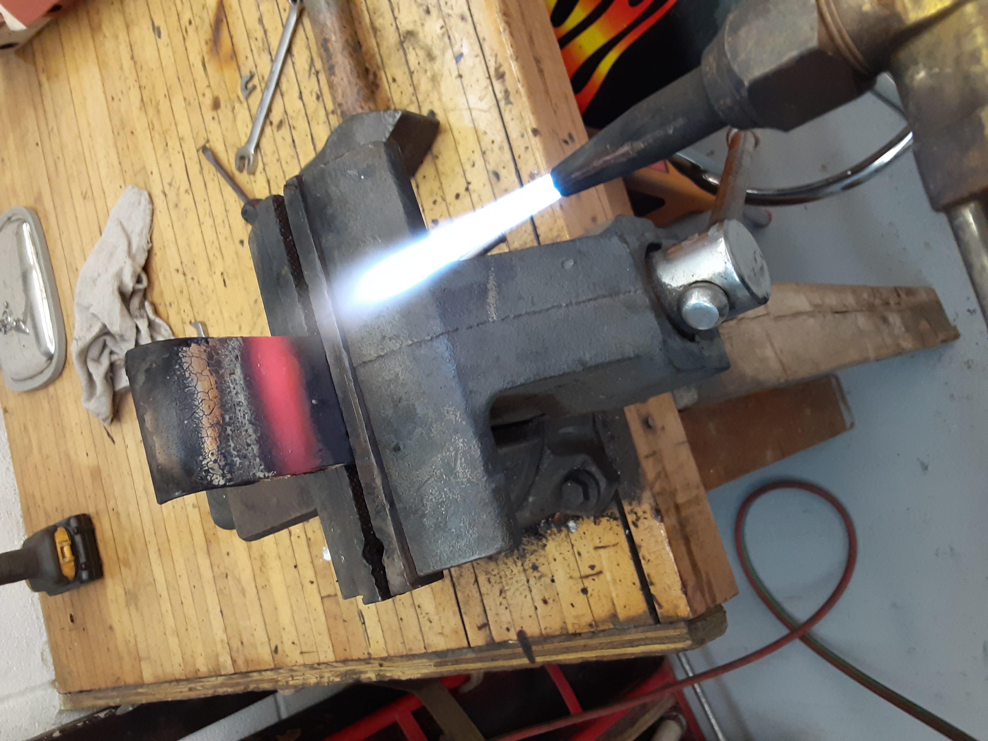 Something was funny about the hockey stick, Jim warned me. It turned out the one I had was wrong and the dimple was drilled about 20 degrees from where it should be. Both of these are wrong.