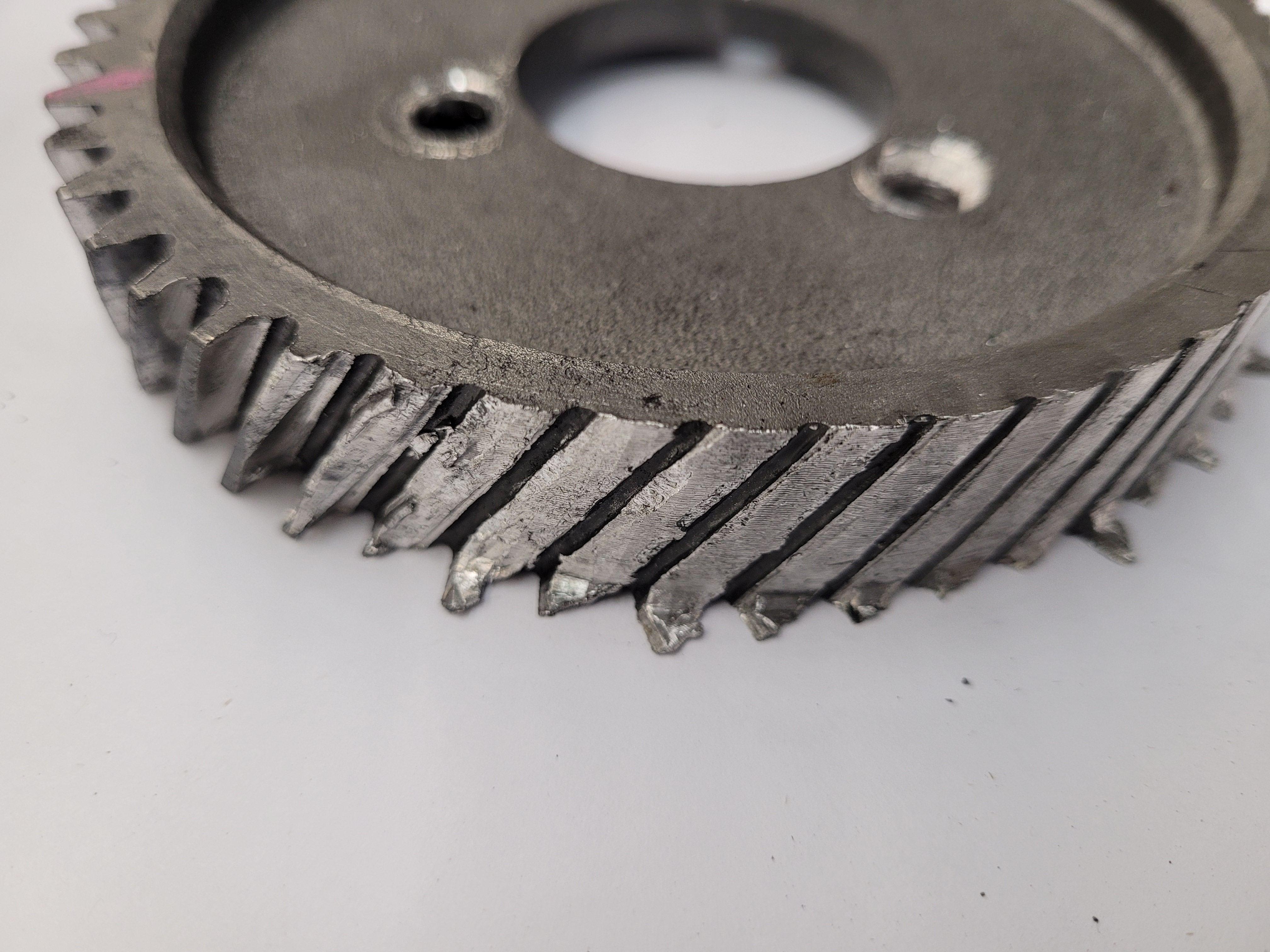New aftermarket crank gear. We bought a new cam gear but the runout was way out of spec (.009") so we ended up using a nice original gear. Backlash was under .002" through 720* and did not walk out of the case.