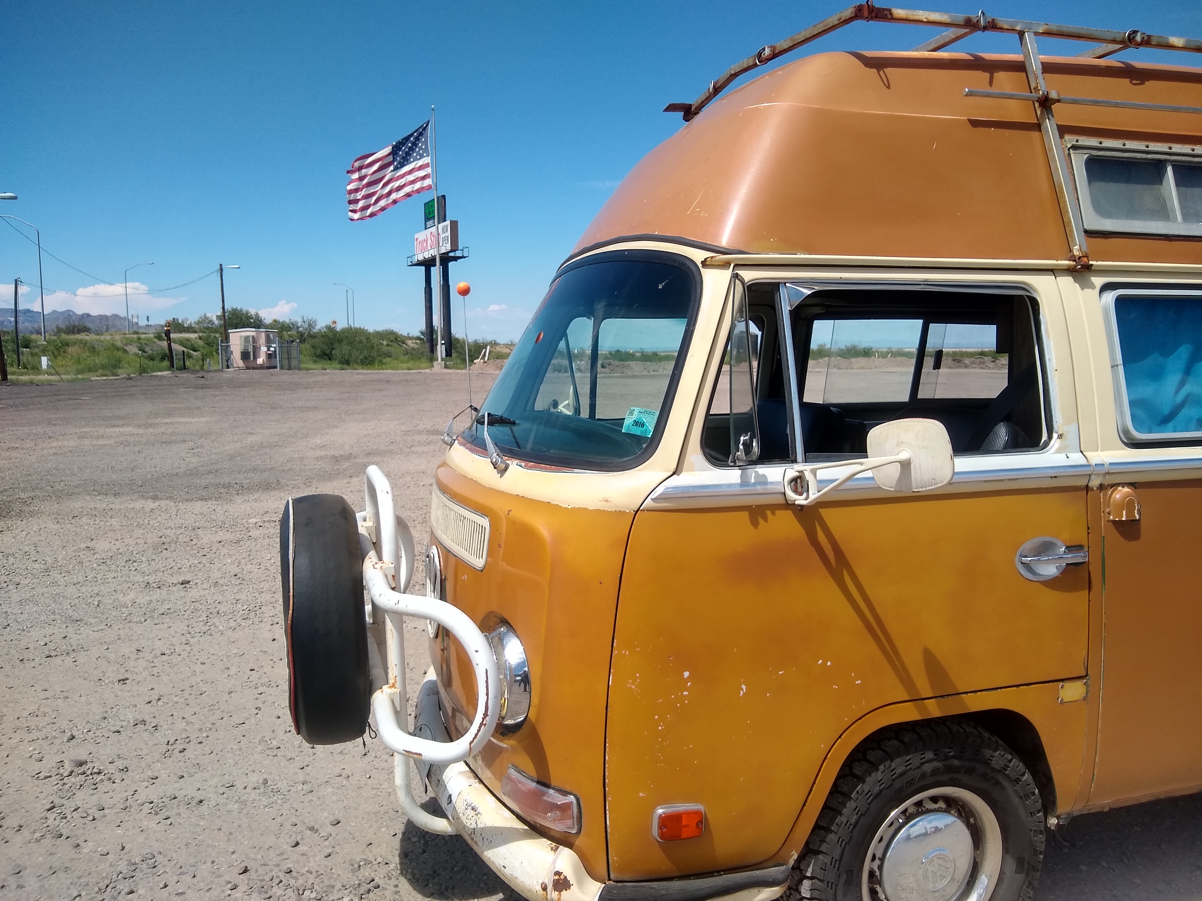 We'll, I did it again! I bought another 71' bus in the desert and drove it home. The last time it was a tin top, this time it's a high top Adventurewagen. It's in great condition, no rust and a bunch of work done to keep it running cool. The previous owner used to take it to burning man festival (9 times)