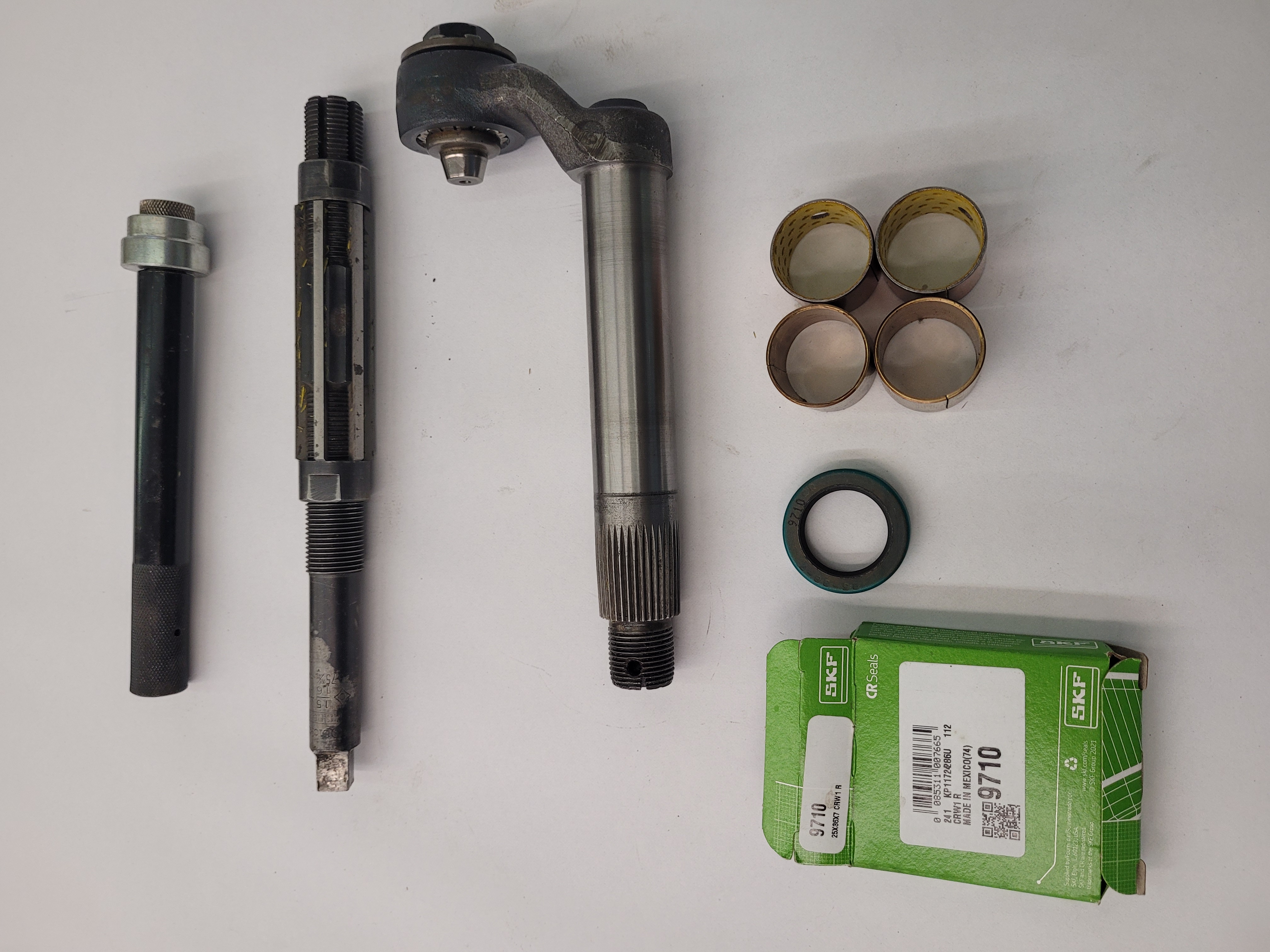 FYI, you can use spindle king pin bushings. Same OD. You just have to open up the ID on a lathe just a little or do a bunch of reaming. That's what I used when rebuilding steering boxes.