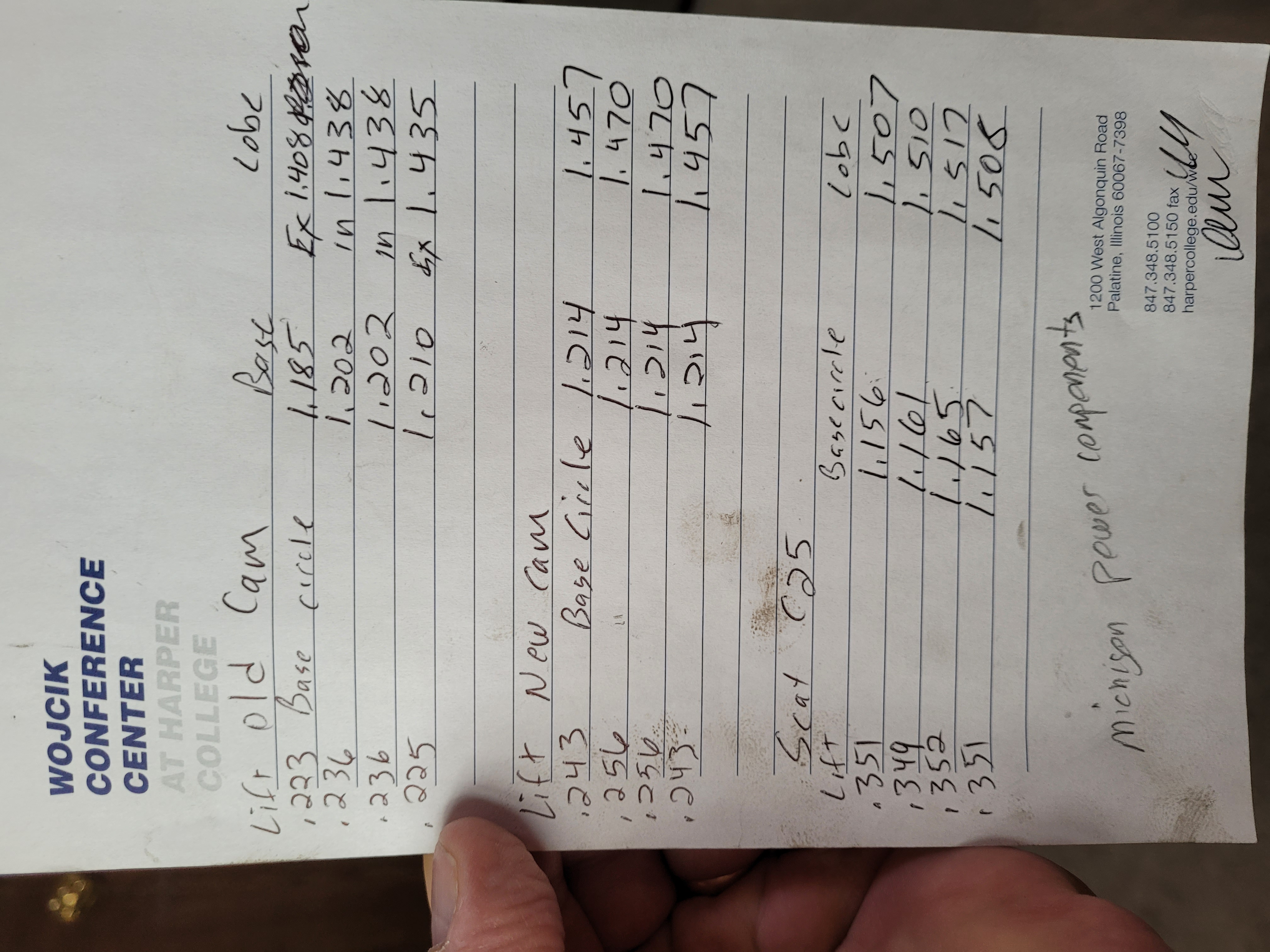 Lee had another guy helping him in Mansfield who unfortunately passed away late last year during the rebuild process, so I was the second string QB for the job. Lee had tried to get this bus running properly for years and couldn't, upon teardown he found a healthy cam marked C25 in it. Stock FI doesn't play well with wicked cams. We degreed three cams including an old stocker, new stocker, and the one marked C25. (BTW, Scat makes a C25 that doesn't match up to the specs of this cam. According to the Samba Gurus, Scat's mfg process could easily make a cam like this POS and box it as a C25) The C25 cam was about 3 or 4 steps up from a stock cam, definitely way too much lift and duration for a stock engine. If you're a cam guru, notice my notes on the paper- the base circle varied dramatically on the old stock cam and the C25 cam as well as the lift and duration. The new cam from Jorge at European was very consistent on its measurements. Also notice a stock cam has no overlap- news to me.