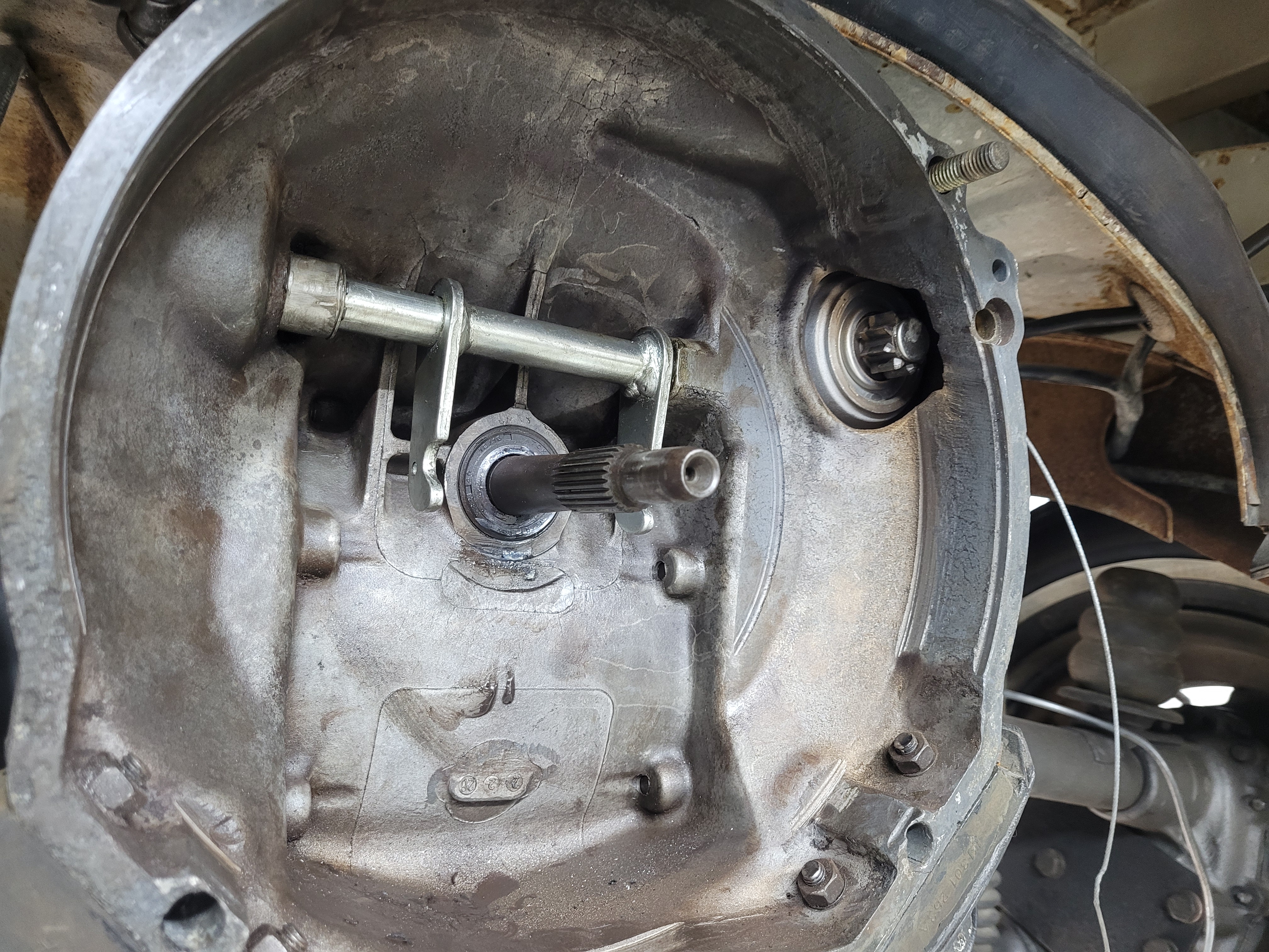 Trans is a late '66 by the 6v bellhousing (ground out), straight clutch arm, and rubber stops.