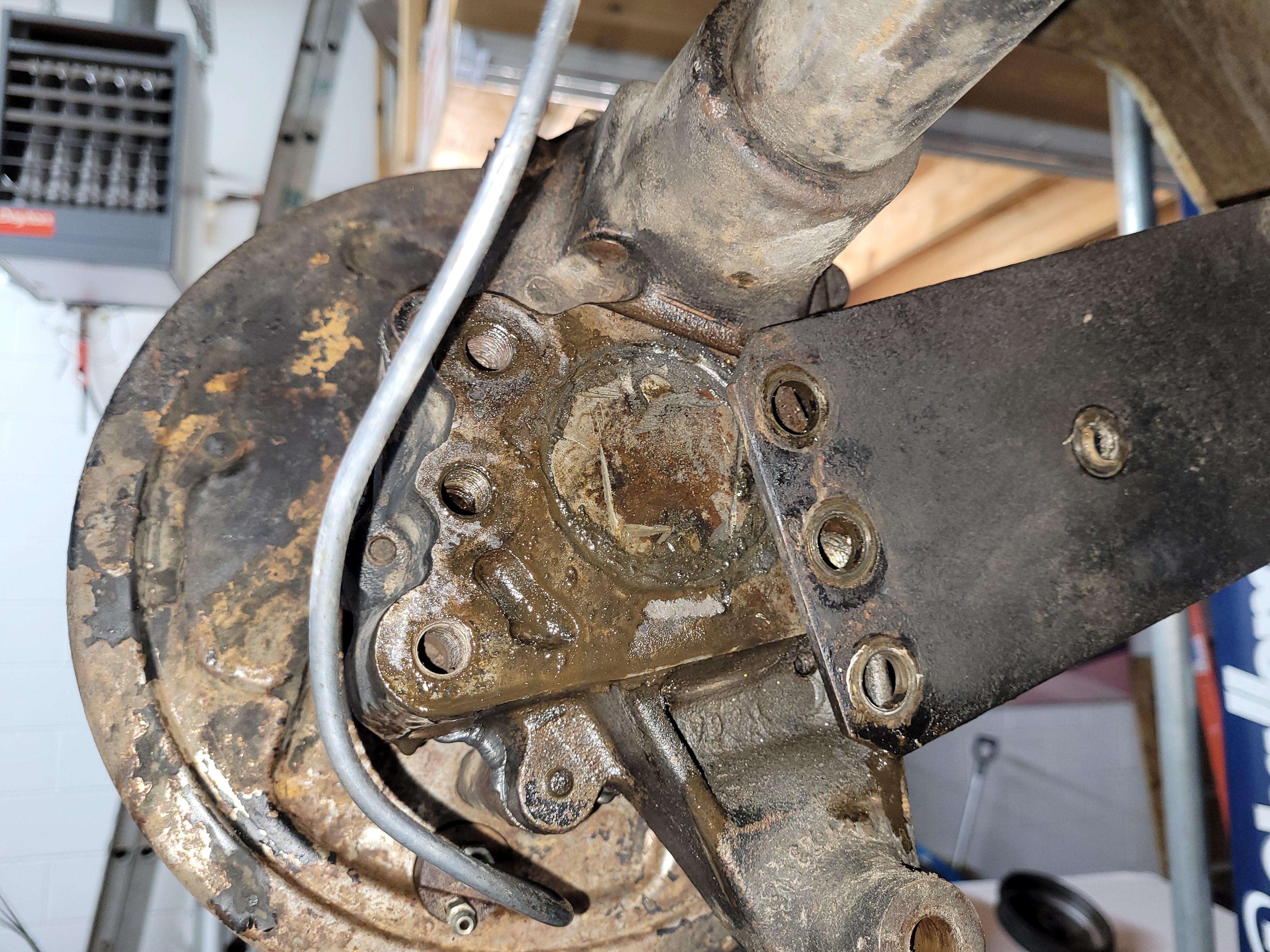The left RGB was leaking pretty badly- leaving a 4-6" puddle when parked, it was the big freeze plug for accessing the inner wheel bearing that was leaking.