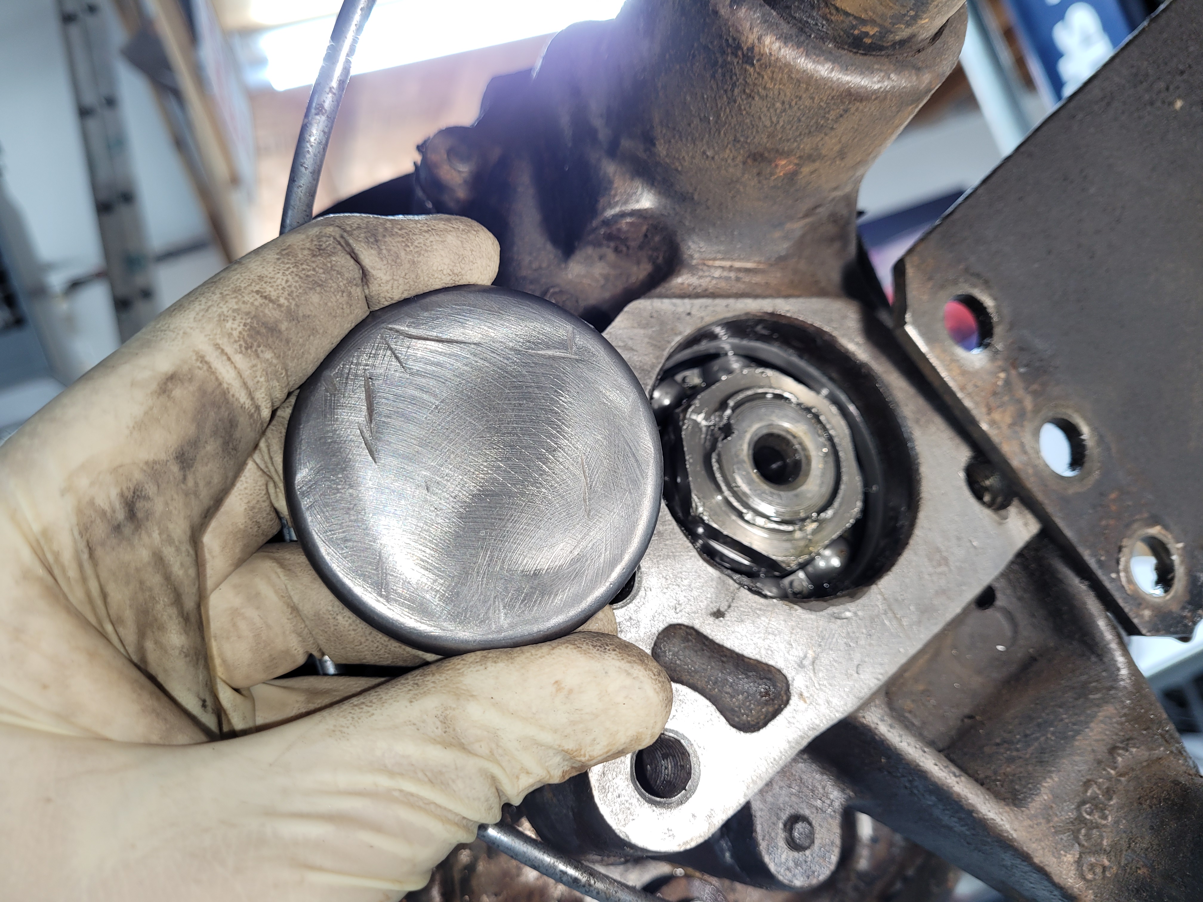 The left RGB was leaking pretty badly- leaving a 4-6" puddle when parked, it was the big freeze plug for accessing the inner wheel bearing that was leaking.