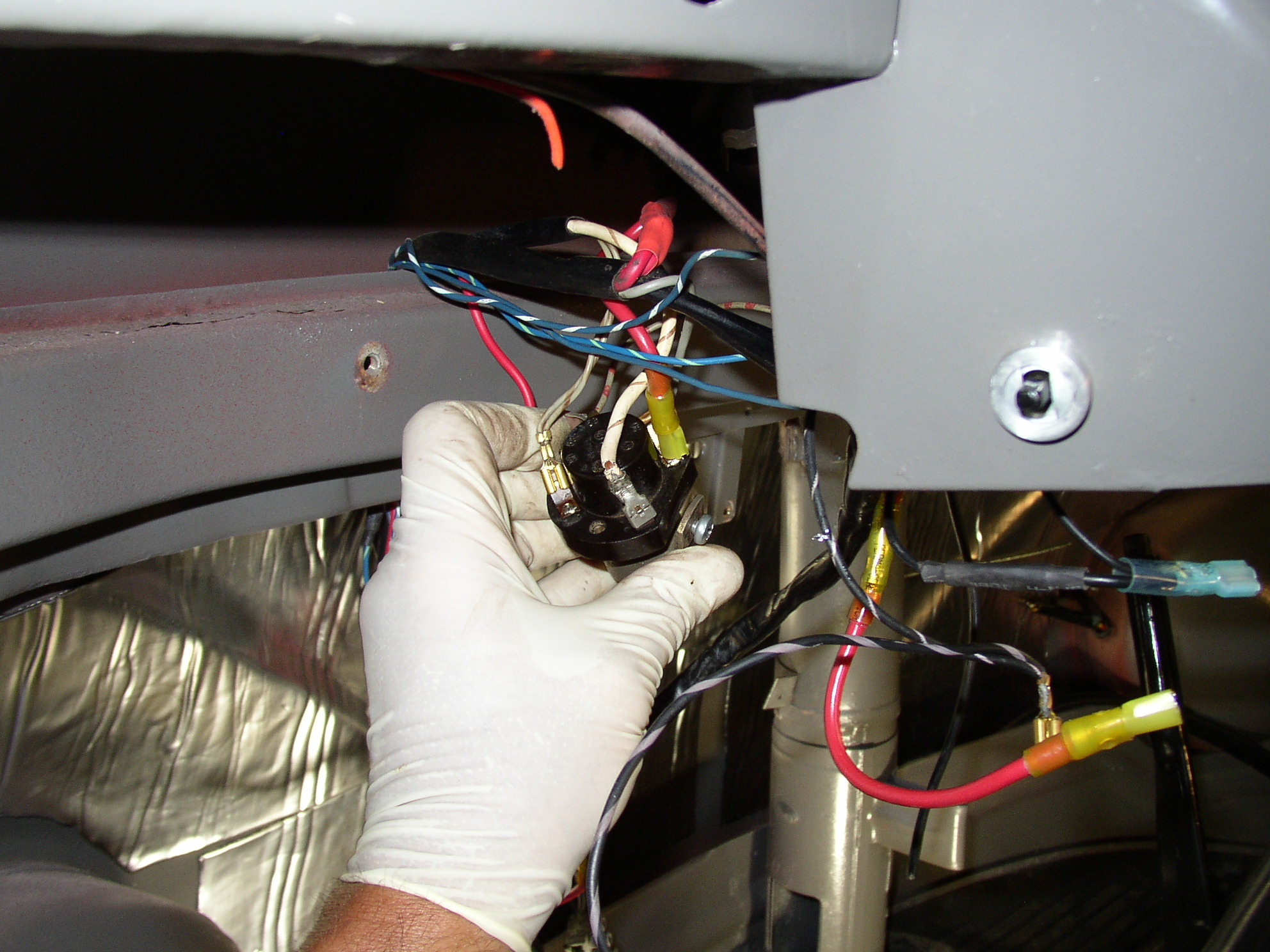 At my age, I'm not keen on chasing electrical problems every time I want to go for a spin. I remember all the problems I had with my old '59 with an old harness and screw on terminals. Sure it was original, but original ain't fun when you have no blinkers one day or one or the other brake light is out the next day, or the horn doesn't work or the headlights suddently go out. Begining with the starter, the same pattern was emerging with this bus. While I realize for most folks the wiring in these old buses isn't that complicted, but for me, I decided to have Bruce handle it and I knew it would be done right.