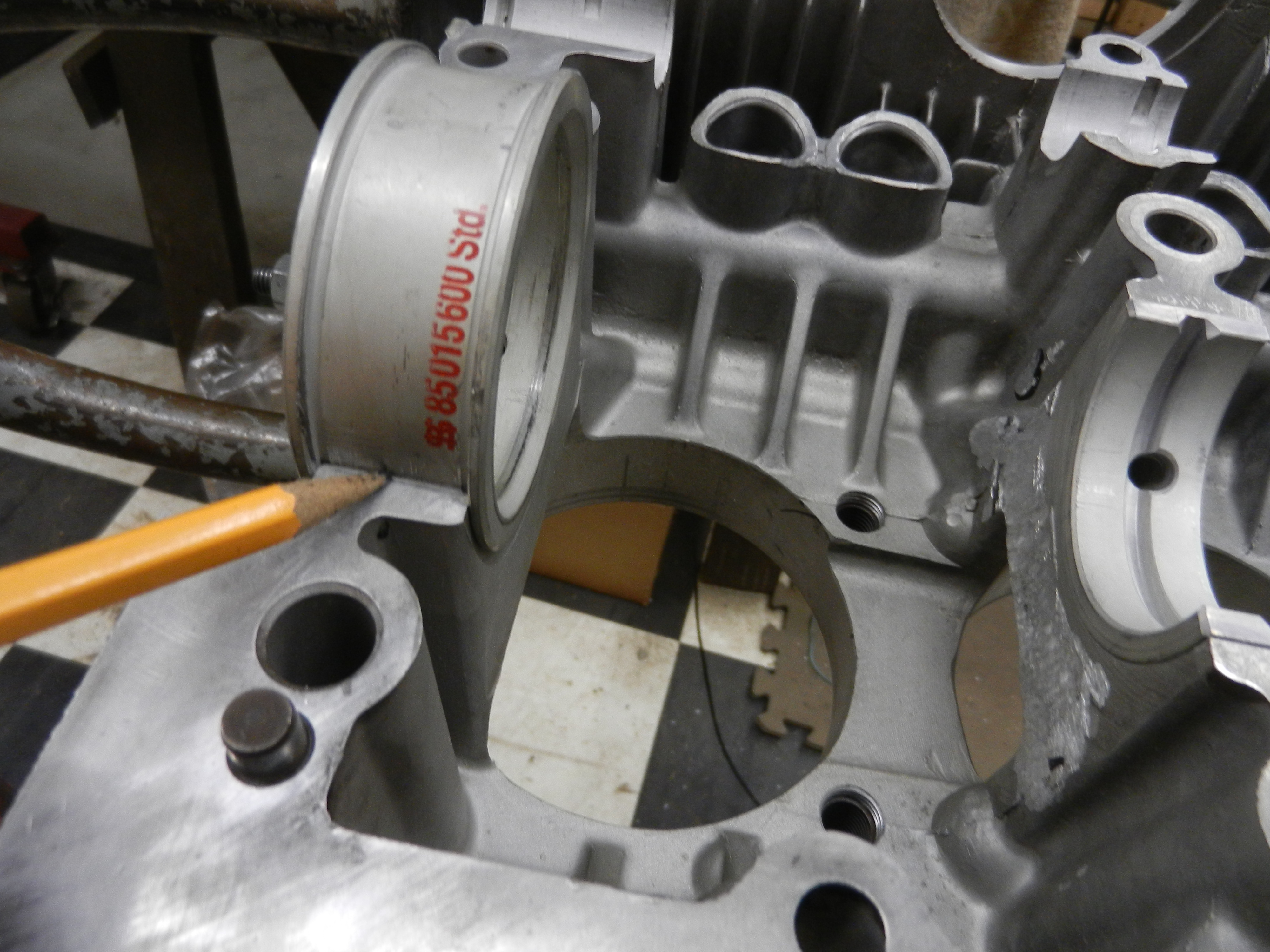 The one on the right is a 914 used with a windage tray,which I did not use. Check the treads for the sump cover. align the mounting hole in the pick up with the case threaded hole. Do this now or have problems when you bolt the case halves together.