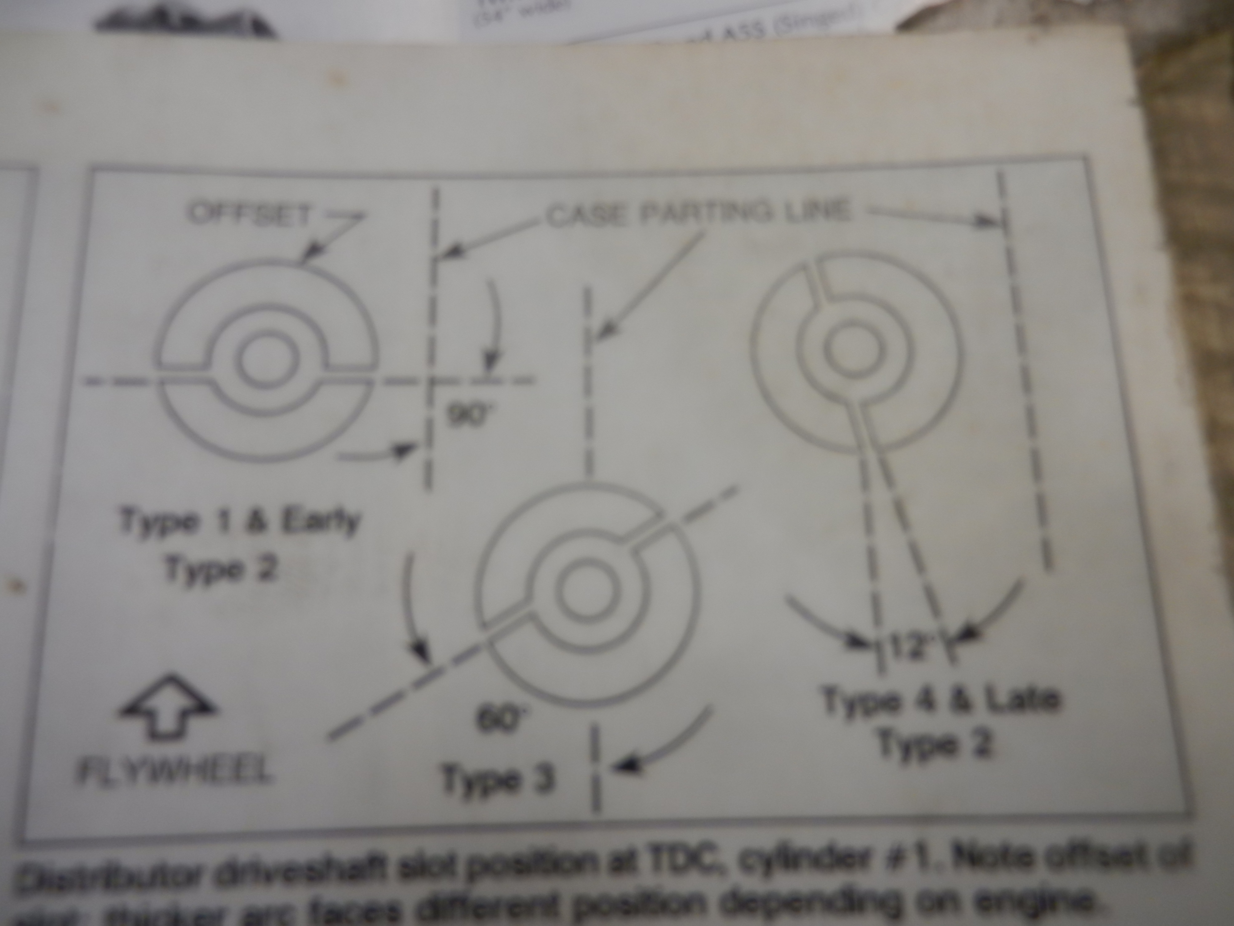 At this point, with #1 rod at it's full out and the heal of the cam facing out, you are at TDC for #1. I like to put a mark on the flywheel at the case seam. and note the location of the woodruf key on the nose of the crank, which should be at 9:00. Then, install the distributor drive gear and spacer and distributor, orienting the distributor to the notch in the distributor body. Type 4 drive gear uses 1 spacer and installs at 12 degrees from the case parting line. a little white grease holds the spacer on to install. A little polishing,and some lube. Install. Now we can find TDC #1 as we proceed, next time