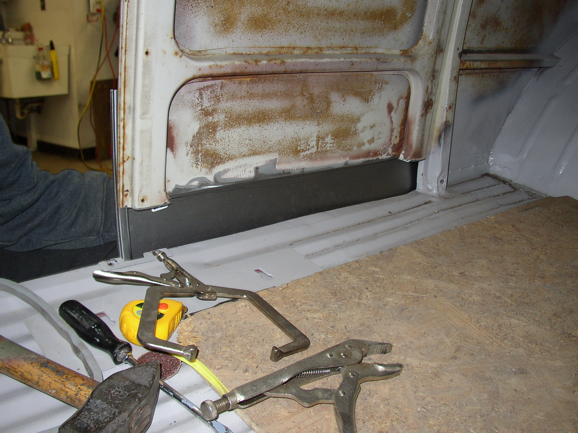 The weather's too sloppy to drive, might as well attack the cargo door bottoms. At a glance from the outside they don't look too bad.... Until you look closer....