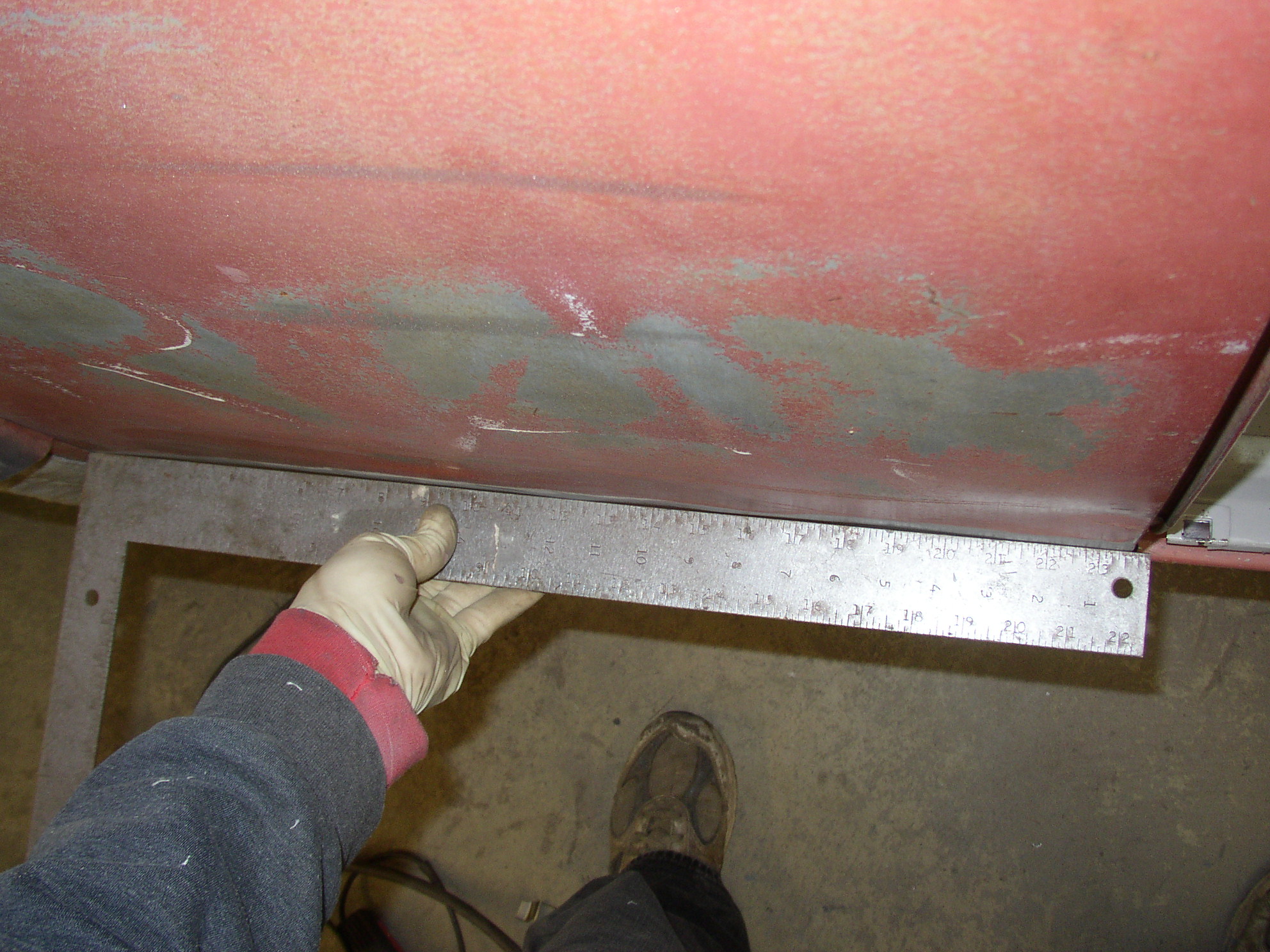 Let's check the warpage with a straightedge. If you're really good, like Kirk, all you need from here is high-build primer and color.