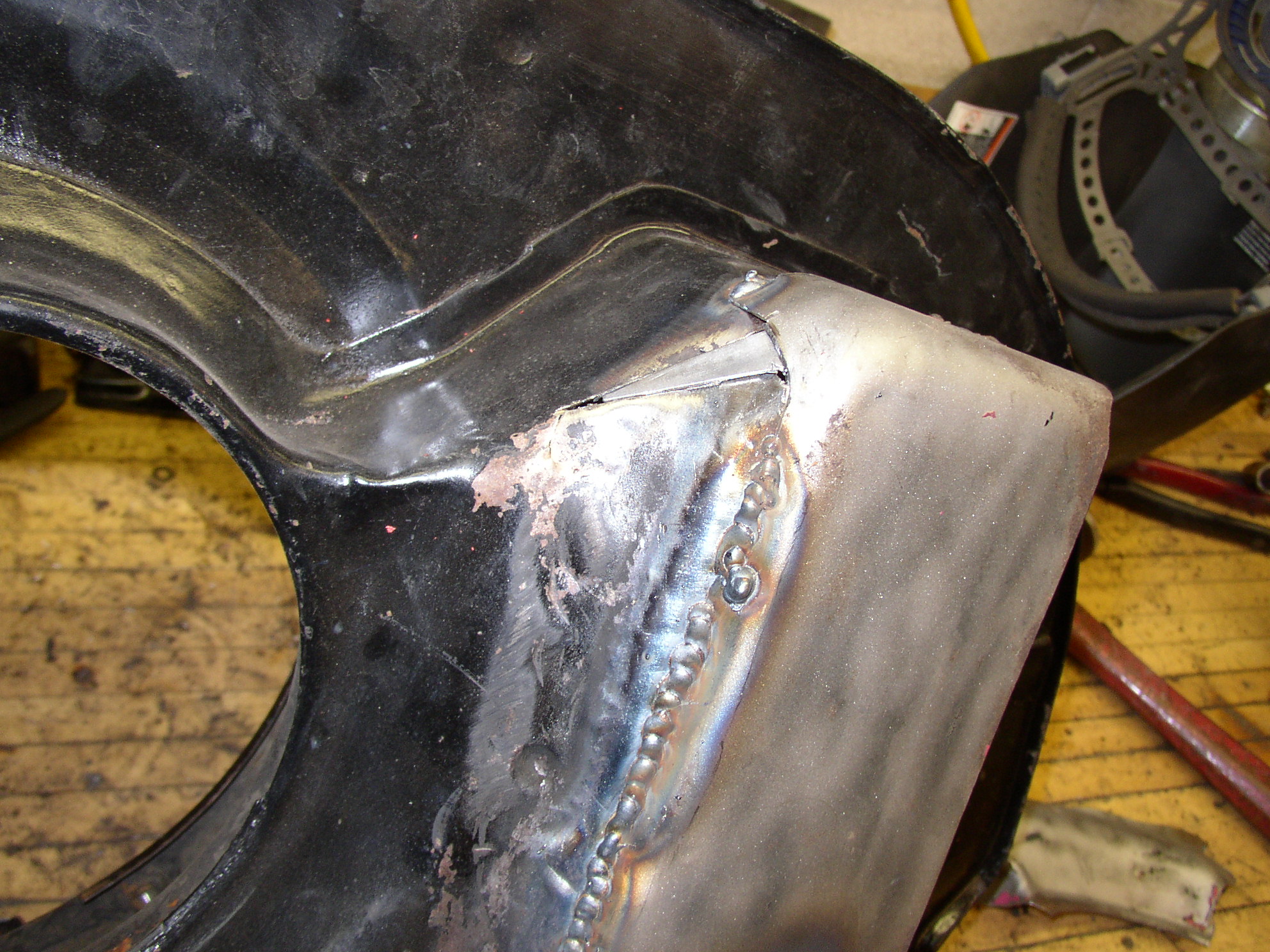 Beat it up a little and fit the new piece in.