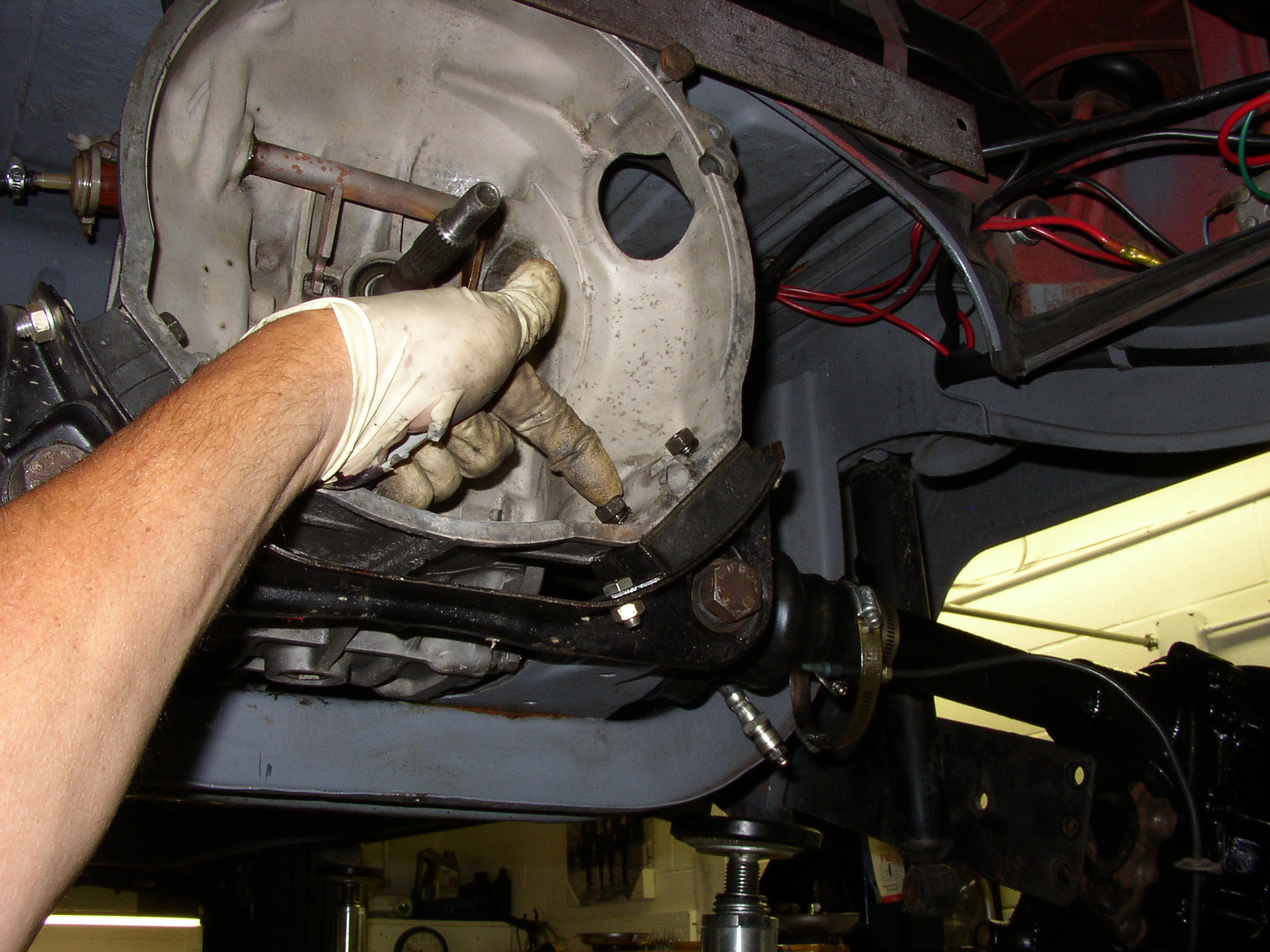 Changing the axles/RGBs is dirty, nasty, greasy work. Disassemble, scrape the gaskets, wire wheel (throwing crap everywhere), solvent wash, then brake clean before RTVing it together for final assembly. I've done this a few times and I'm never looking forward to it. Note shit everywhere and the tarp on the floor. I probably used at least 5 cans of brake cleaner. The only good thing is that everything was new here a couple of years ago so nothing (besides axle seals) needed changing and I didn't pull the stub axles/freeze plugs out because the inner bearing felt fine. I won't post step-by-step as I've already done that at least 3-4 times here, if you want a step by step let me know and I'll send you links. I think I put it up on Samba too.