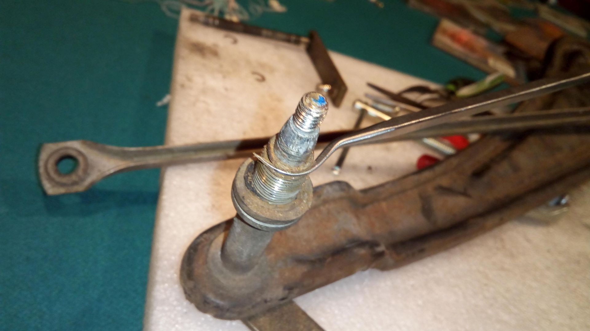 While cleaning the parts I discovered another washer, buried in grime at the base of the shaft