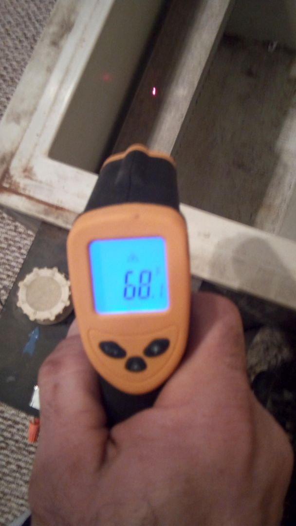 all hooked up to power! nothing blew! temperature at start of test temperature after 20 minutes right about now I had an epiphany and realized that I might burn my basement down, so I quickly unplugged the fridge.