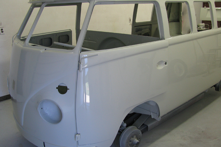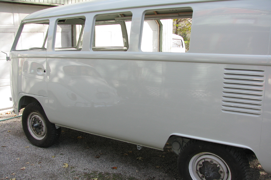 Checked on the Westy today. Every little ding and crease has been filled in, sanded down, and primered. The color should be going on this week.