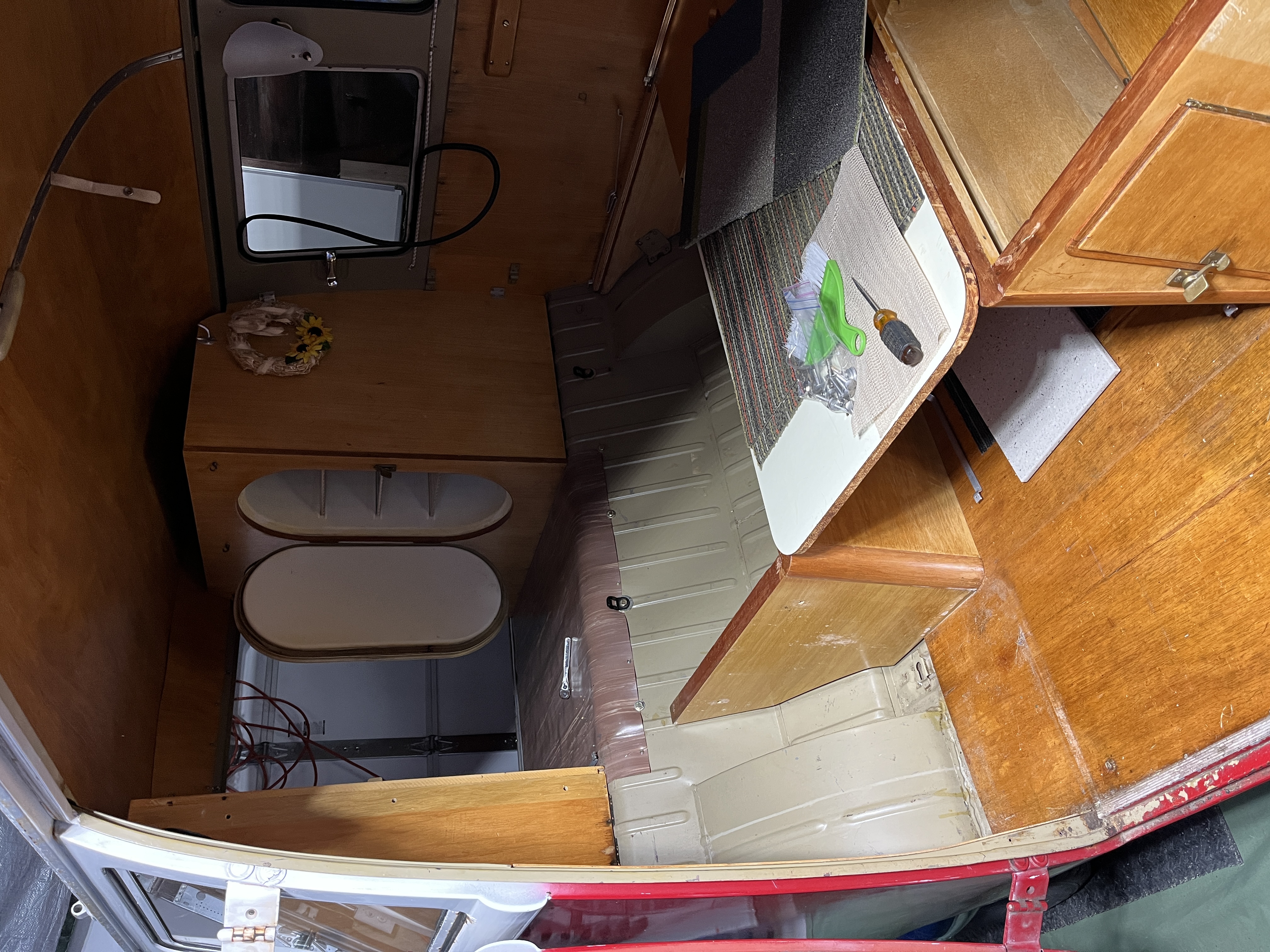 I had a helper home from college so I concentrated on some of the work that is best with two sets of hands. All of the windows are out now. We worked on the cabinets but having a hard time getting the two rear most cabinets out. I’ve had them out before, I’m just not remembering the trick. So pause in that for now.