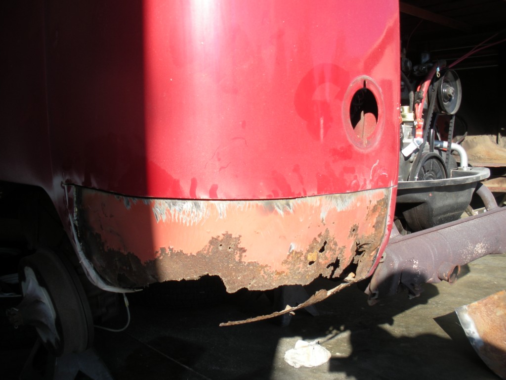 At first glance all looks normal... Underneath, not so good. Check out how squared off the bottom of the corner is This is how they repaired stuff before quality replacement metal was available...brazed and 1/2 of bondo to boot