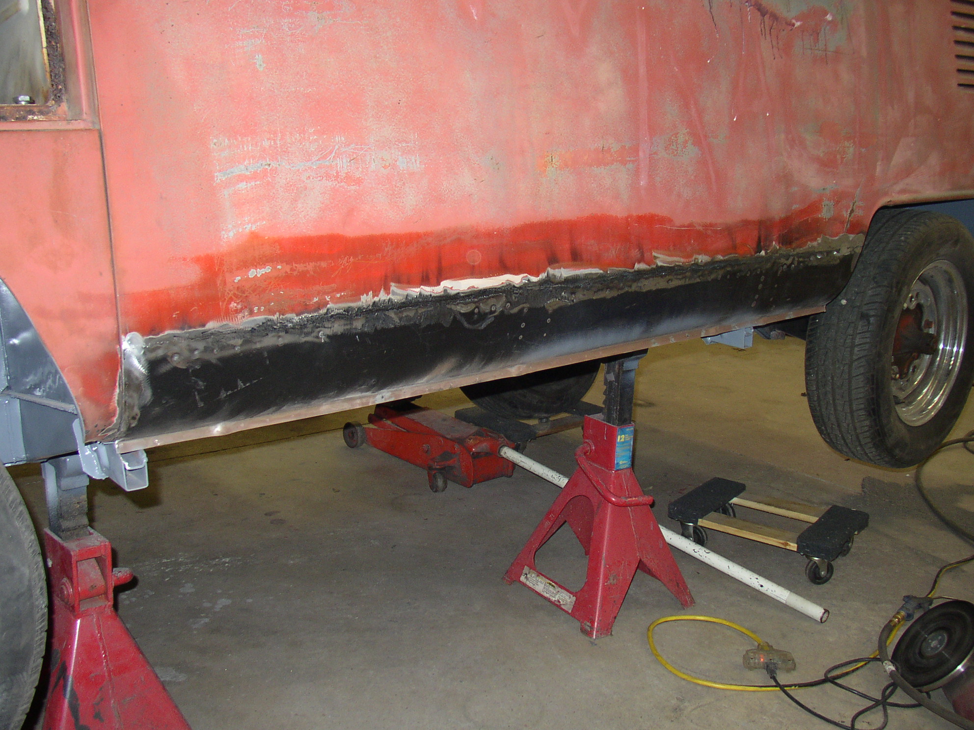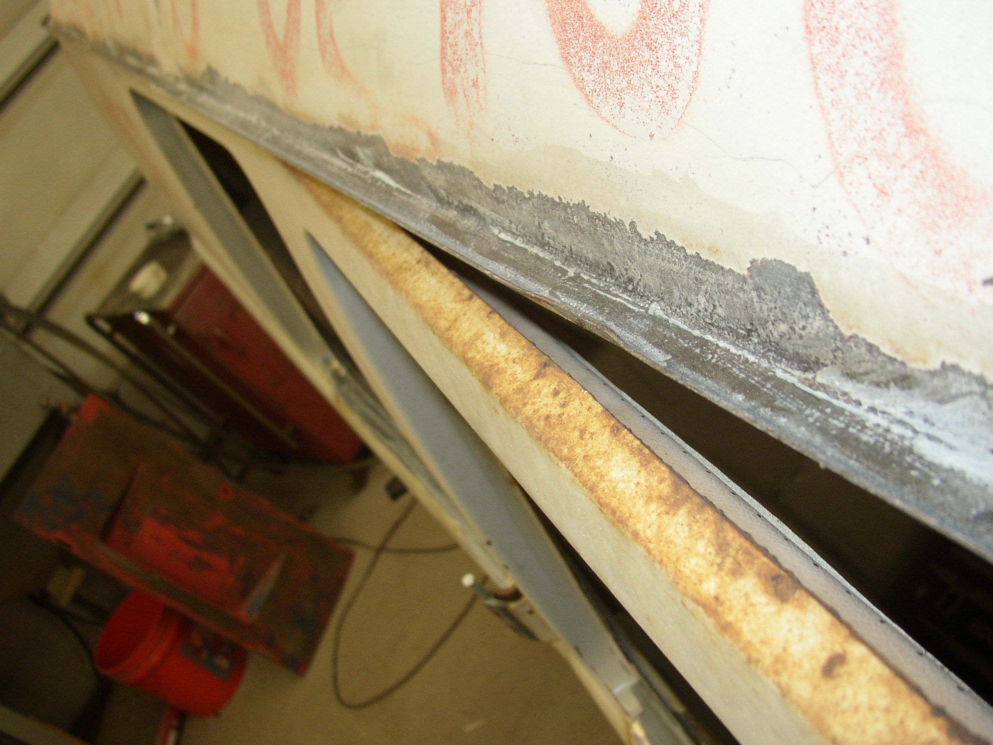 Sandblast the entire gutter and rust spots in the roof, luckily there was no rot there.