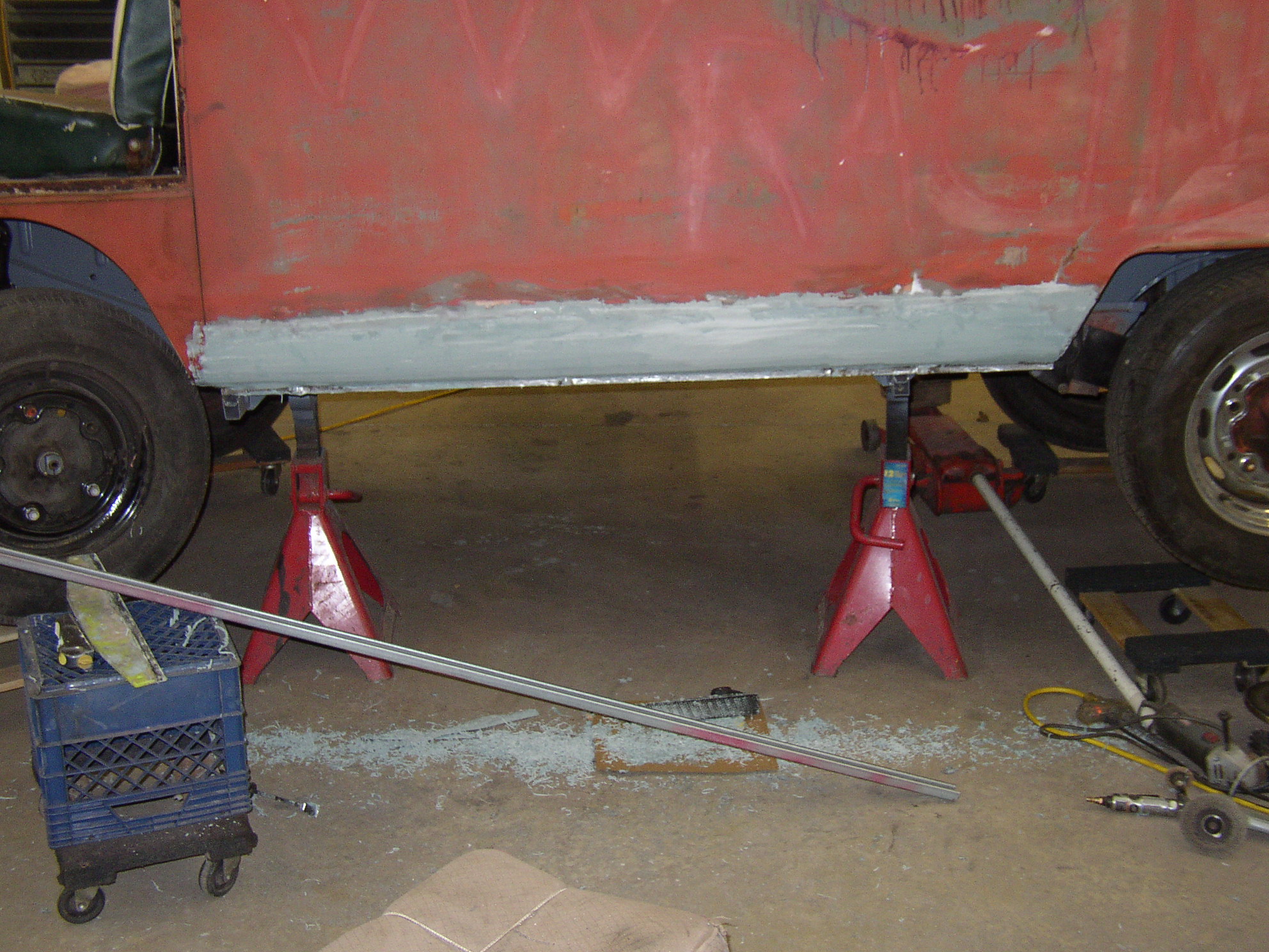 After the páte is ground out will be a skim of fiberglass gel, then mud, then primer.