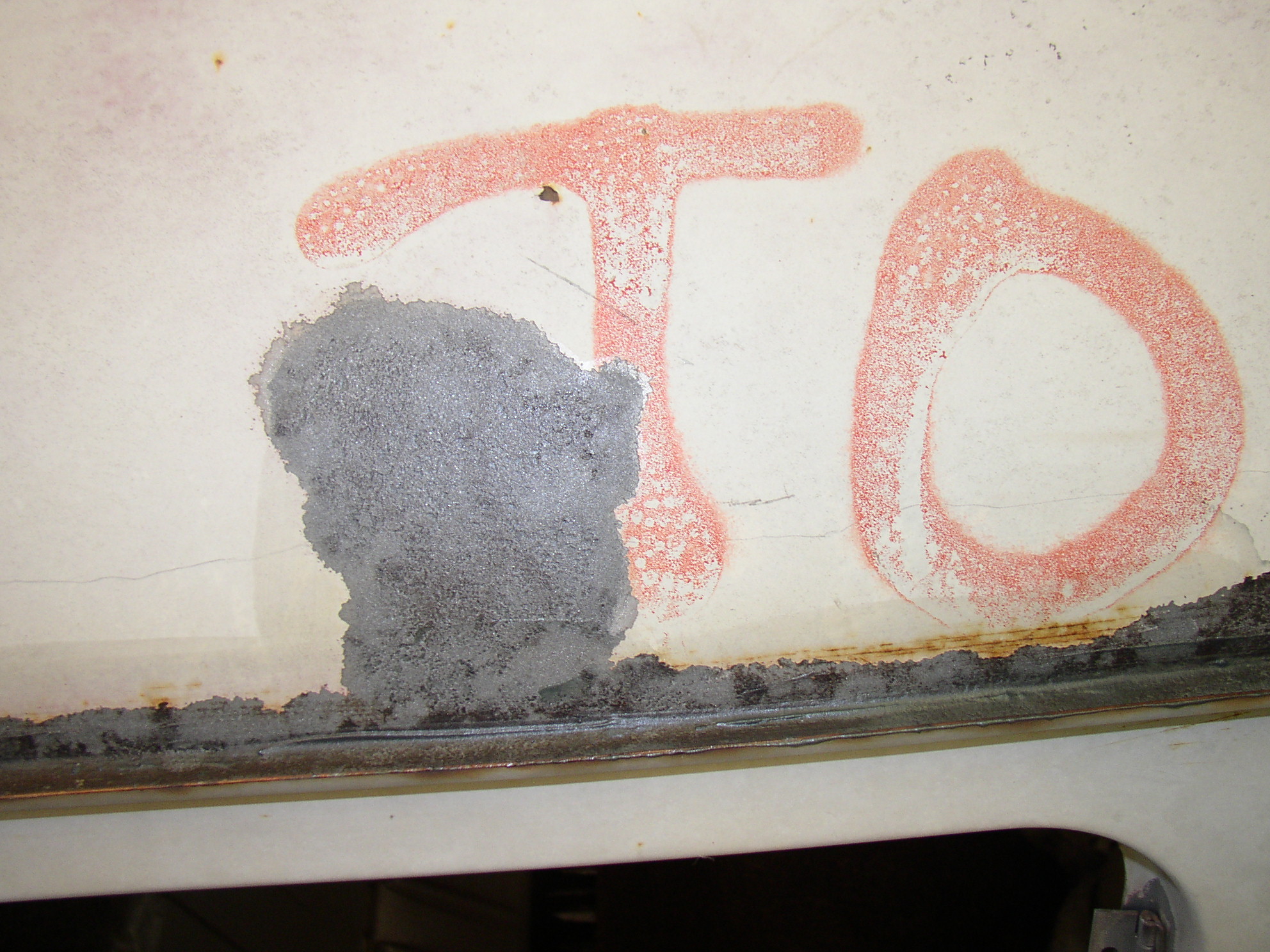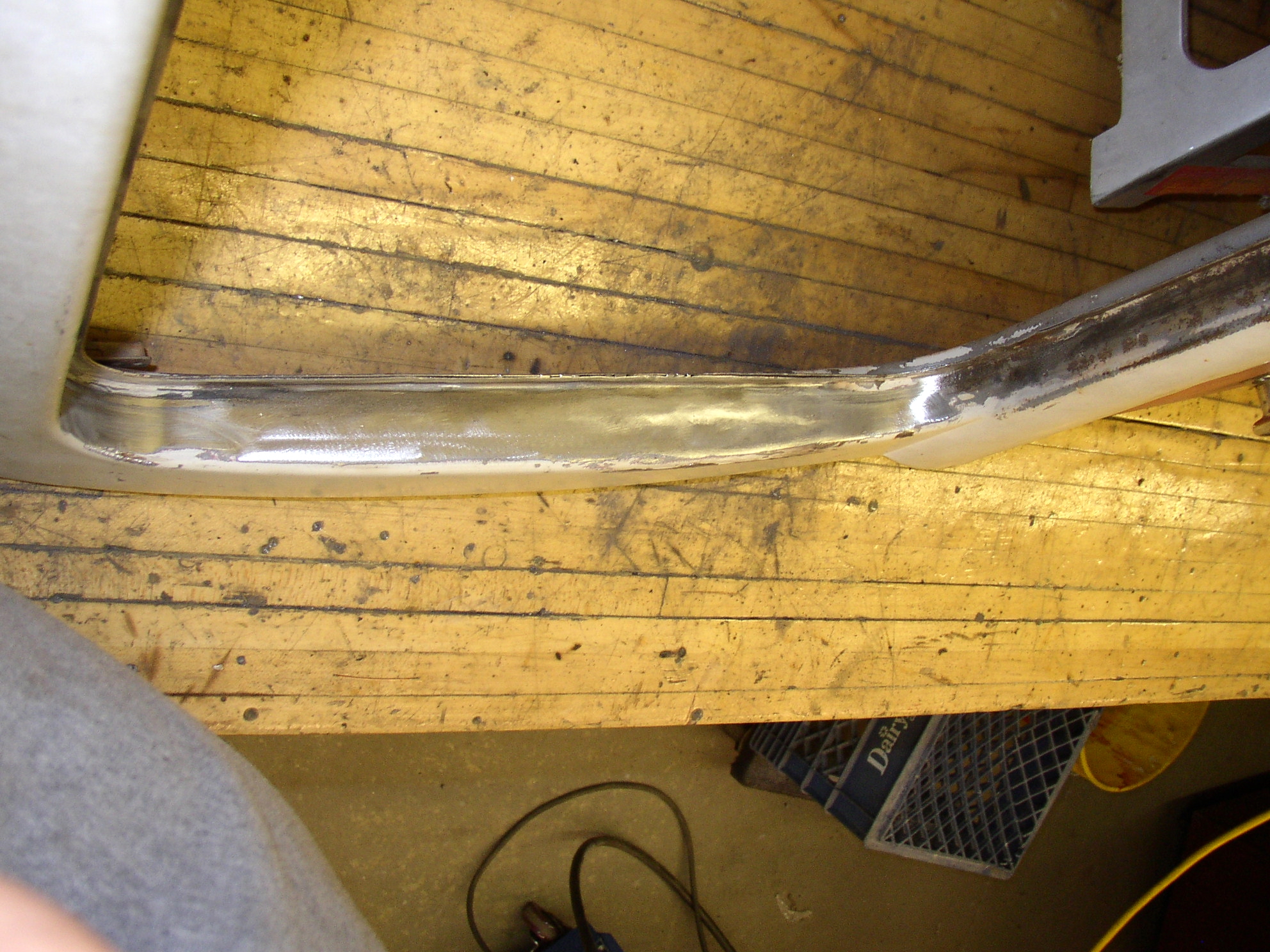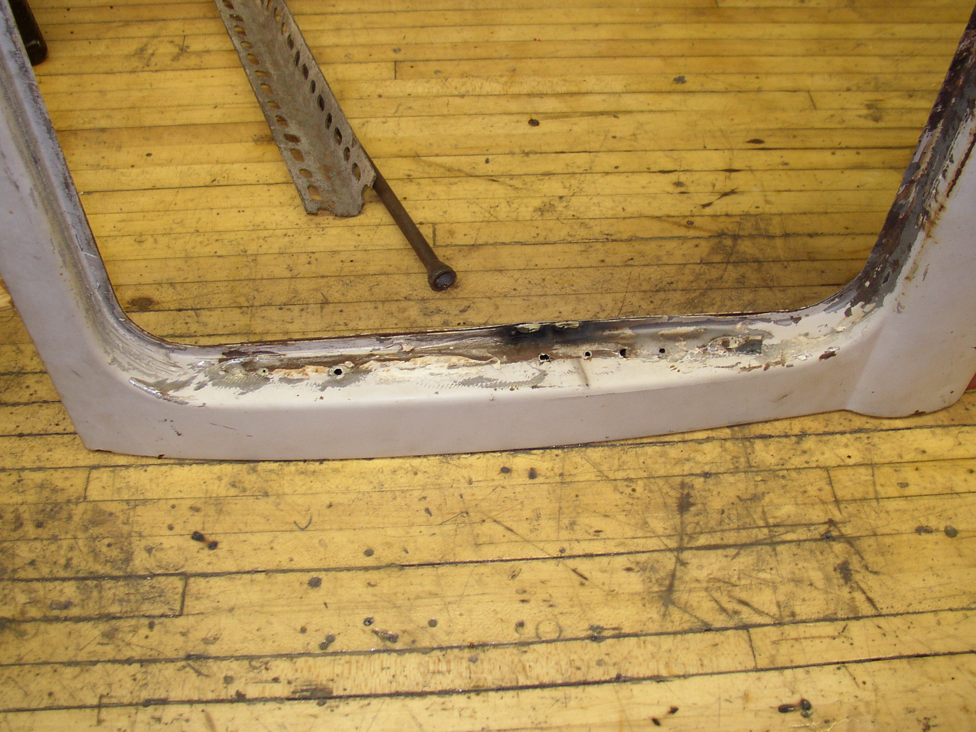 No sweat, grind it down, weld the holes up, grind it out, and work it smooth with a body hammer. I'll get a hinge from WW on my next order. And fill in the pits with "páte". This process is going to be repeated repeatedly.