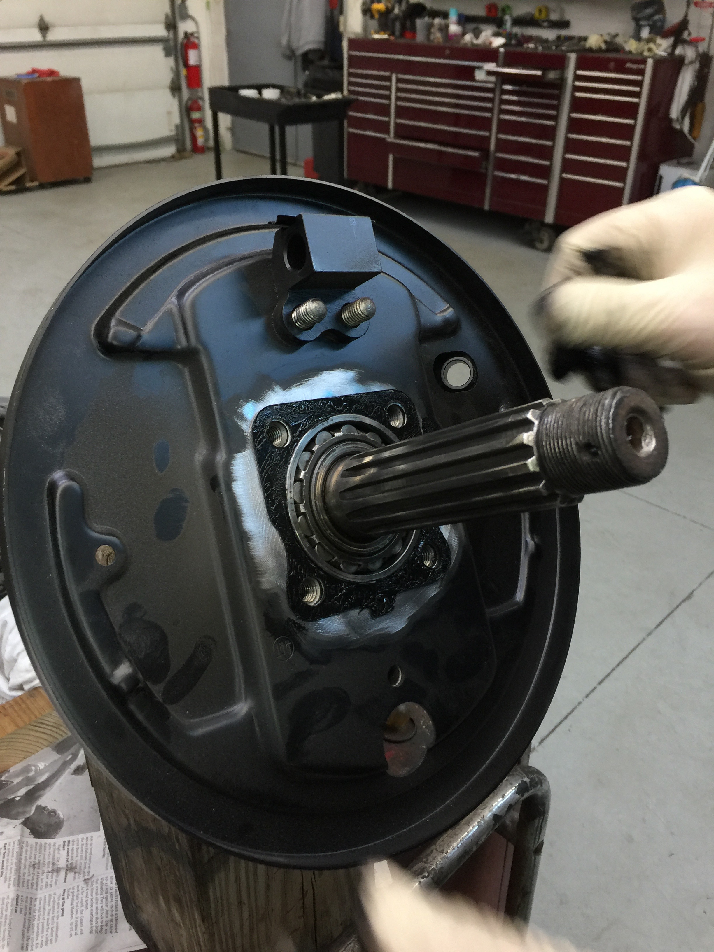The rear axle seal housing install may be straightforward to most, but again Bruce stressed clean, clean, and more clean. He had me re-blast the housing and make sure I got all the star and the adjusting bolts super clean. The whole RTV lesson from yesterday was repeated.