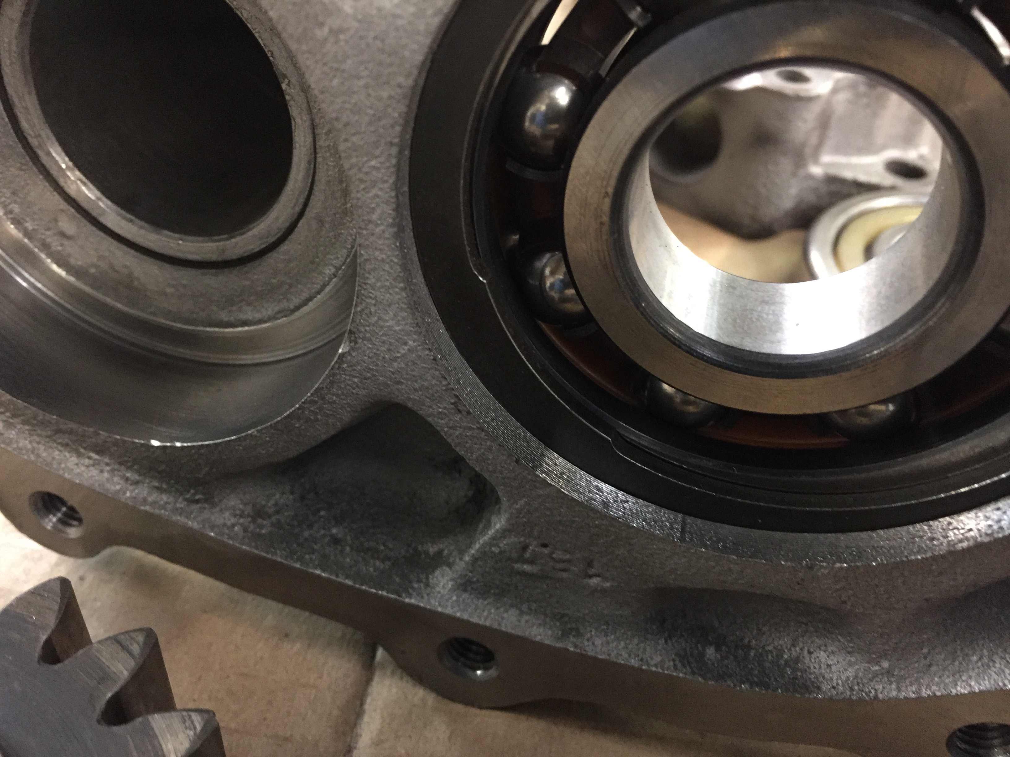 We had one issue with a bad outer axle bearing, but Bruce had a backup. Some of the other original bearings were bad, so Bruce swapped them out. Someone in a prior life really butchered one of the RGB housings (probably trying to get a freeze plug out) but Bruce cleaned it up. (You may see that prior damage in some photos)