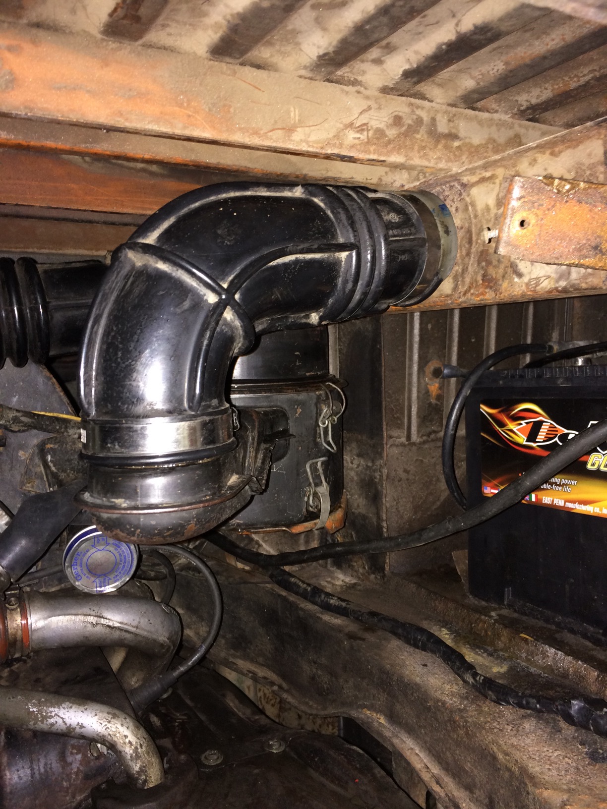 I have included photos for how I think it should fit in there. I should note that this is the air filter that gets its fresh air from a hose attached to the frame rail.