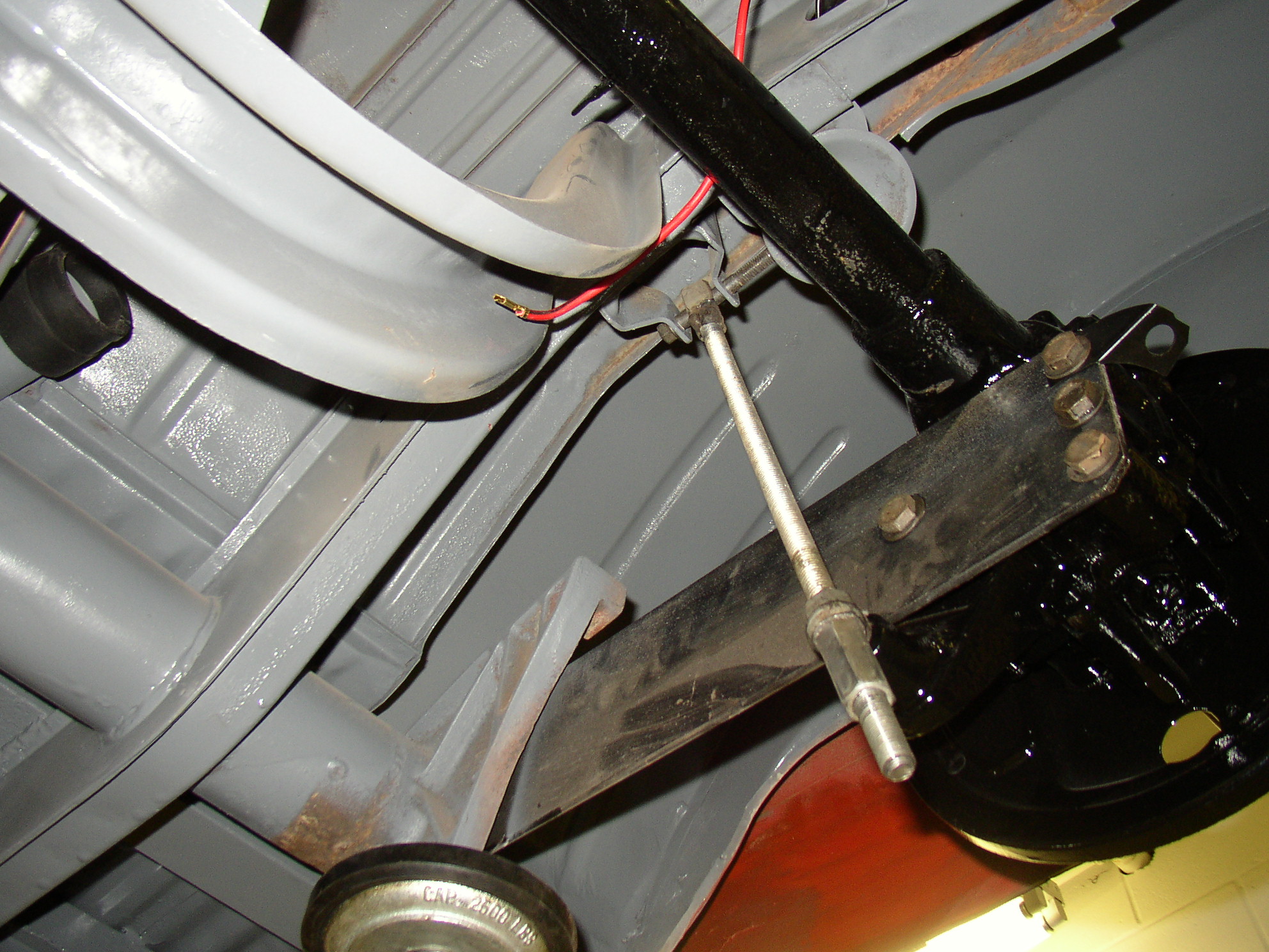 Your Bowden tube should have a bit of a bow in it, this prevents clutch chatter from your tranny mounts flexing and moving the clutch cable at the same time. Bolt up your spring plates, and you need to level the axles to install split boots. (One of these days I'll order some 1 piece boots.....) I have a hillbilly homemade tool that goes in the shock mounts to compress the torsion bar and level the axle. Now install your boots.