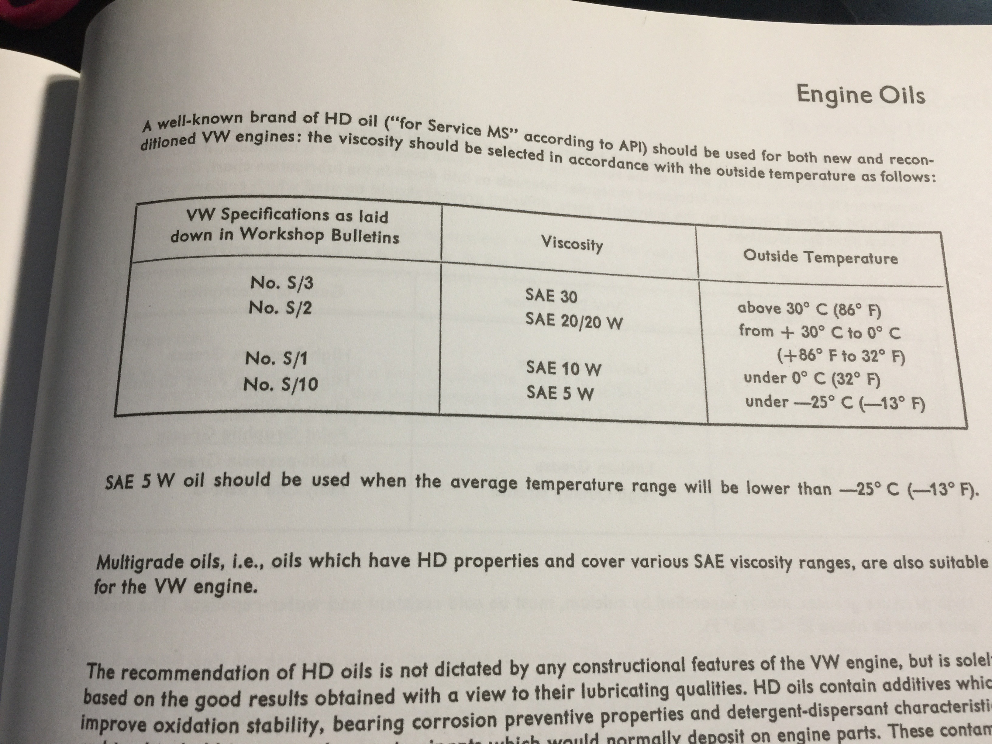 VW's recomendations changed in the 70's. I have always used 20/50 This is from 70's Bentley.