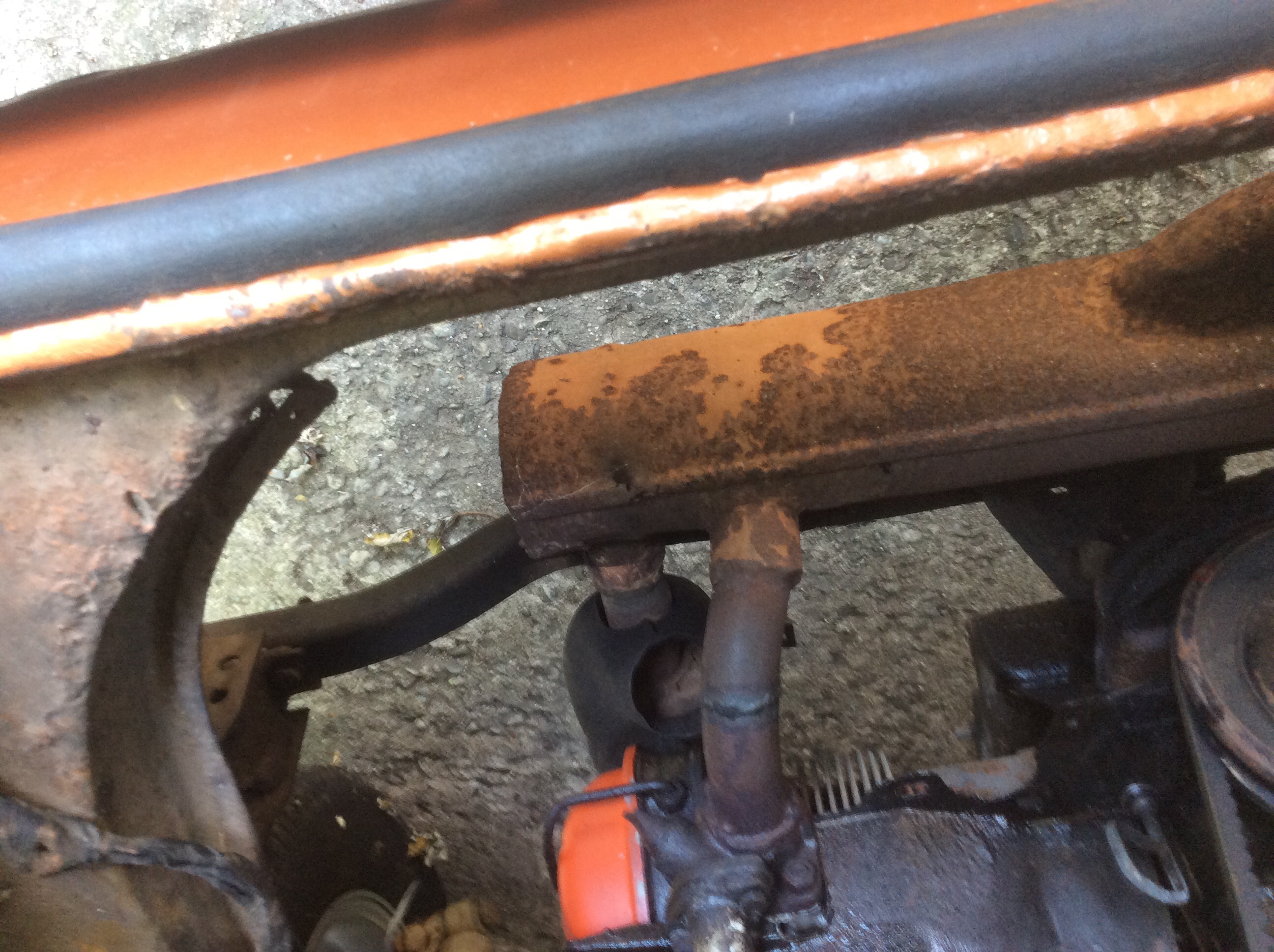 First project is to replace the exhaust. I've never seen an exhaust like this and thought maybe it was some special Central American VW Part. When I saw that it was welded to the heater boxes it was clear that this was no factory exhaust. Appears to be cobbled together from several mufflers including parts of an actual VW one. I am going to replace it with a stock exhaust and J-tubes until I can locate some good heater boxes. Not planning to drive this during the winter anyway.