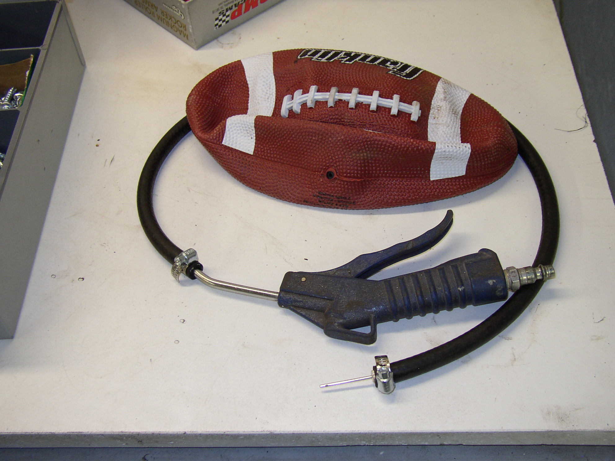 You flatten the football and slide it in place just behind the nose, this is best done with the harness out as the main harness runs right through here. There's enough structure just behind it to push forward and push the dent out. While the football is expanded you take a body hammer and lightly tap all around the creases to remove fatigue and help keep the dent from returning when the ball is deflated. It's not perfect but it is much better.