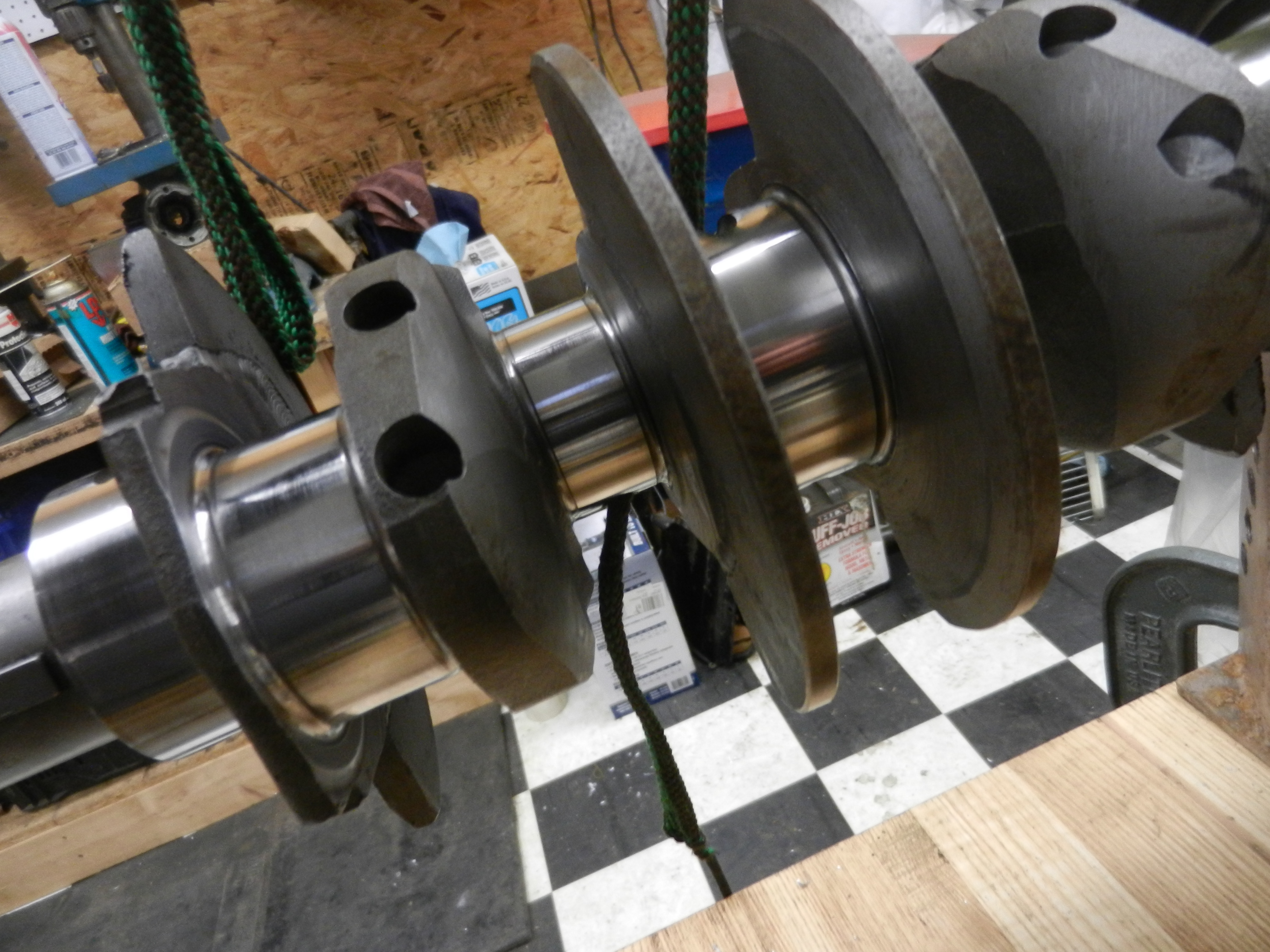 The counter weights are welded on a stock crank to offset this imbalance.The crank is then balanced. The result is a crank that rotates perfectly with no "whip" do to imbalance. Which results in an extremely smooth running engine capable of much higher RPM without beating the center main bearings and journals. Do to this added material, it is sometimes needed to :clearance some areas of the case.