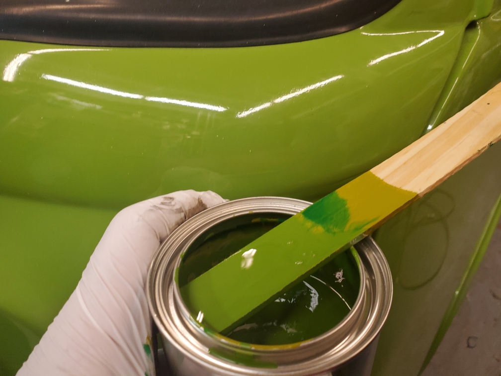 I knew Sweet Pickle had been repainted on the outside turns out it was a bit off from the original sage green.